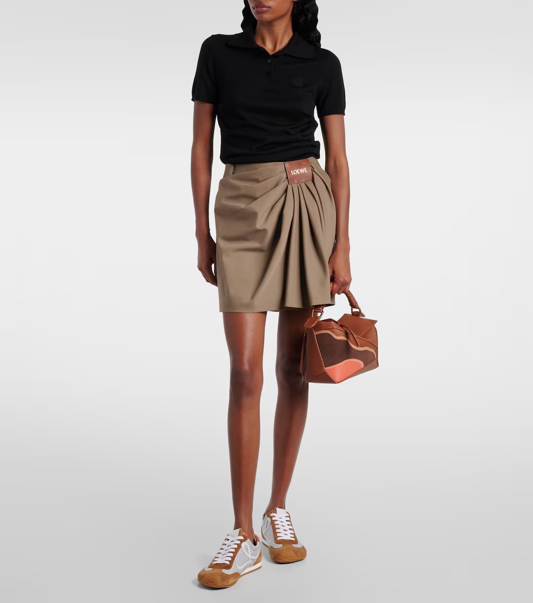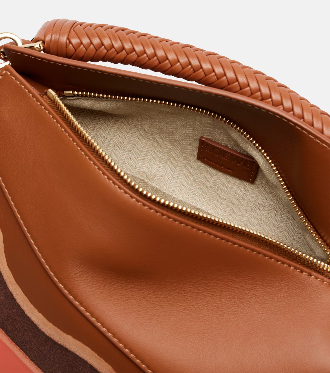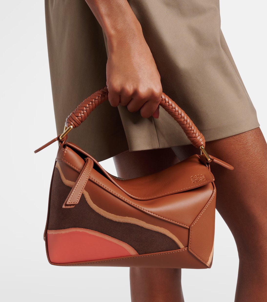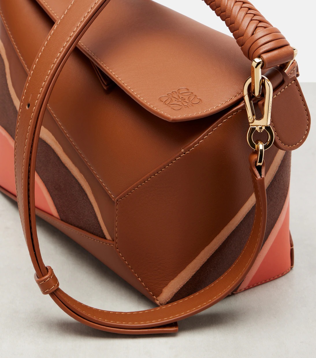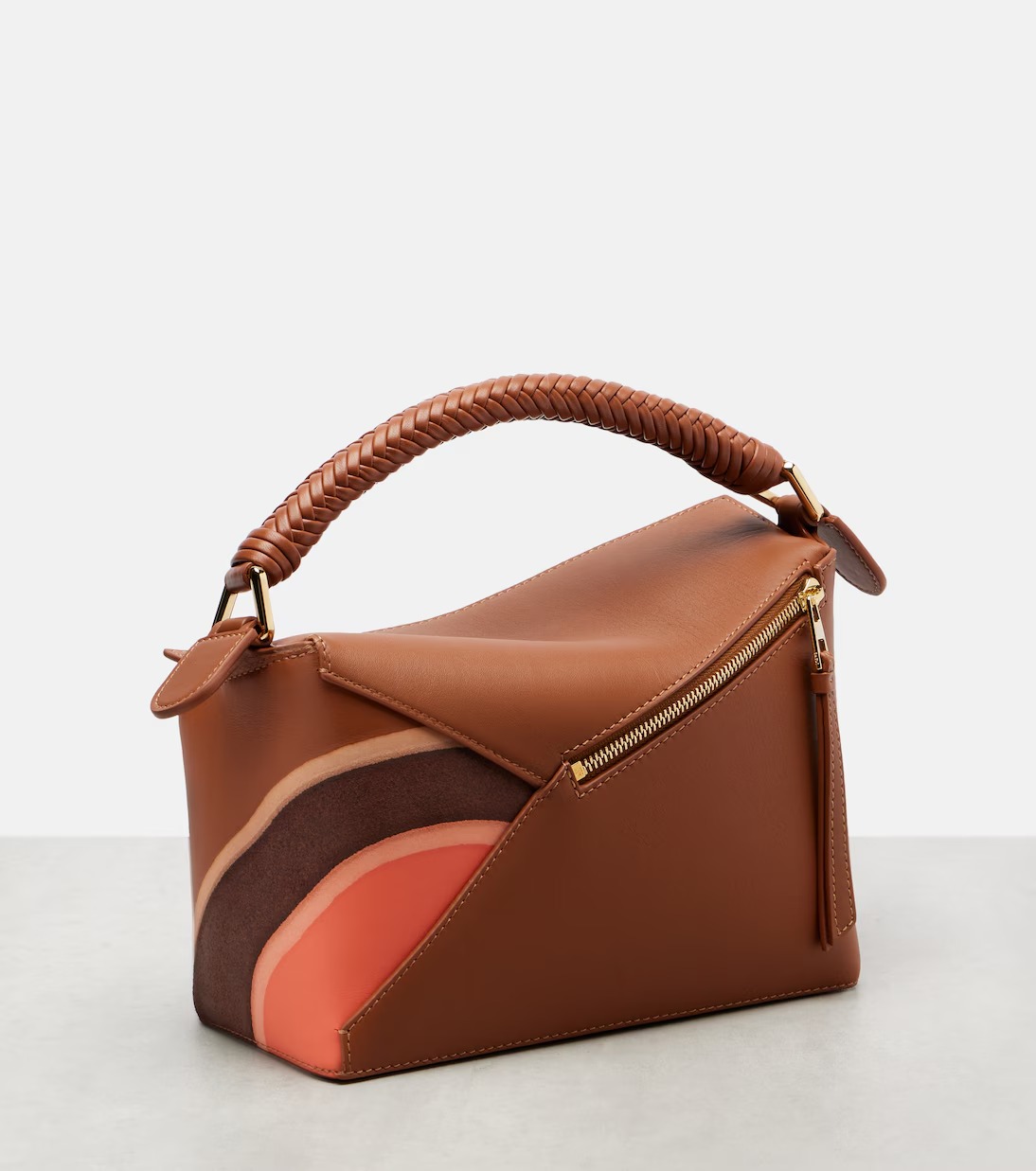 Crafted from supple leather, the Puzzle Edge Landscape shoulder bag from Loe feature a zipped top and internal slot pockets. A braided top handle and detachable shoulder strap complete the piece.