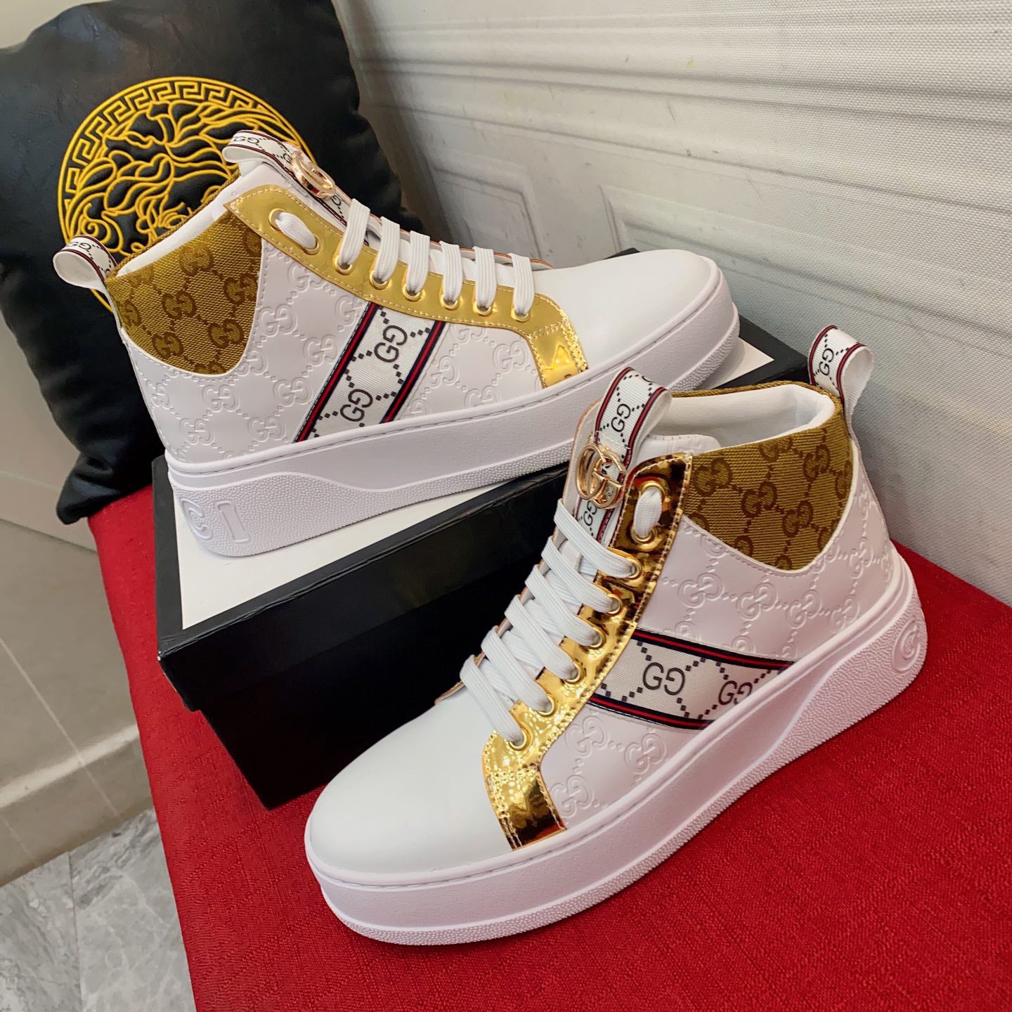 • New golden platform high-top fashion sneakers ankle boots