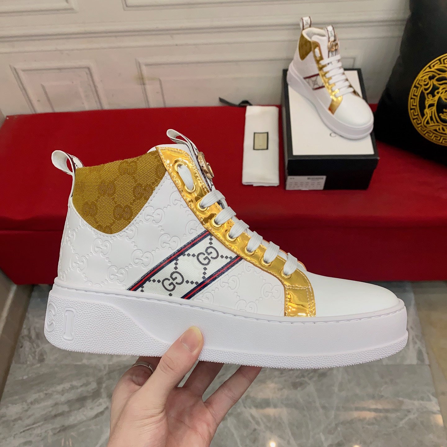 New golden platform high-top fashion sneakers ankle boots
