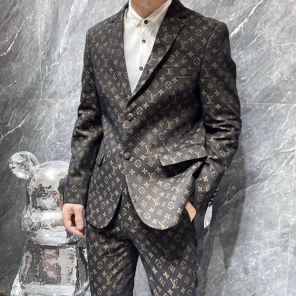 New luxury v logo print formal suit