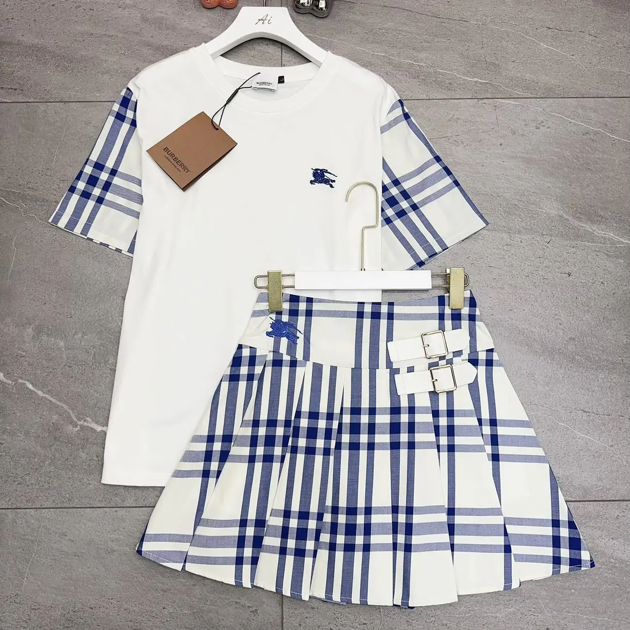 • New Classic Plaid Short Sleeve Pleated Skirt Set 1025031422