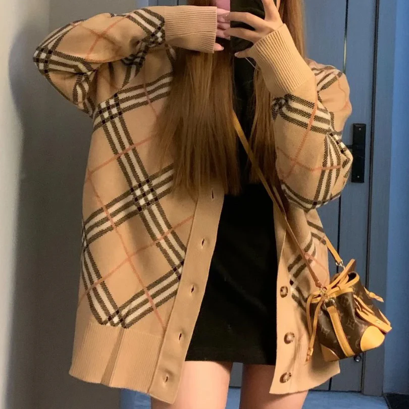 • New fashion plaid unisex cardigan sweater jacket 1024102126