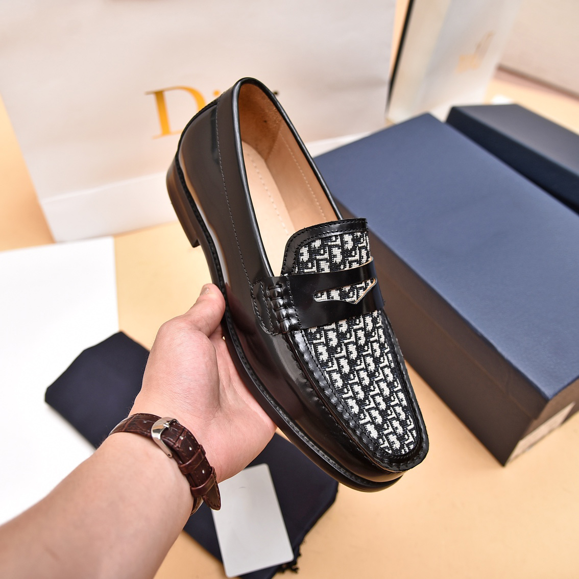 Upper: calf leather, technical fabric