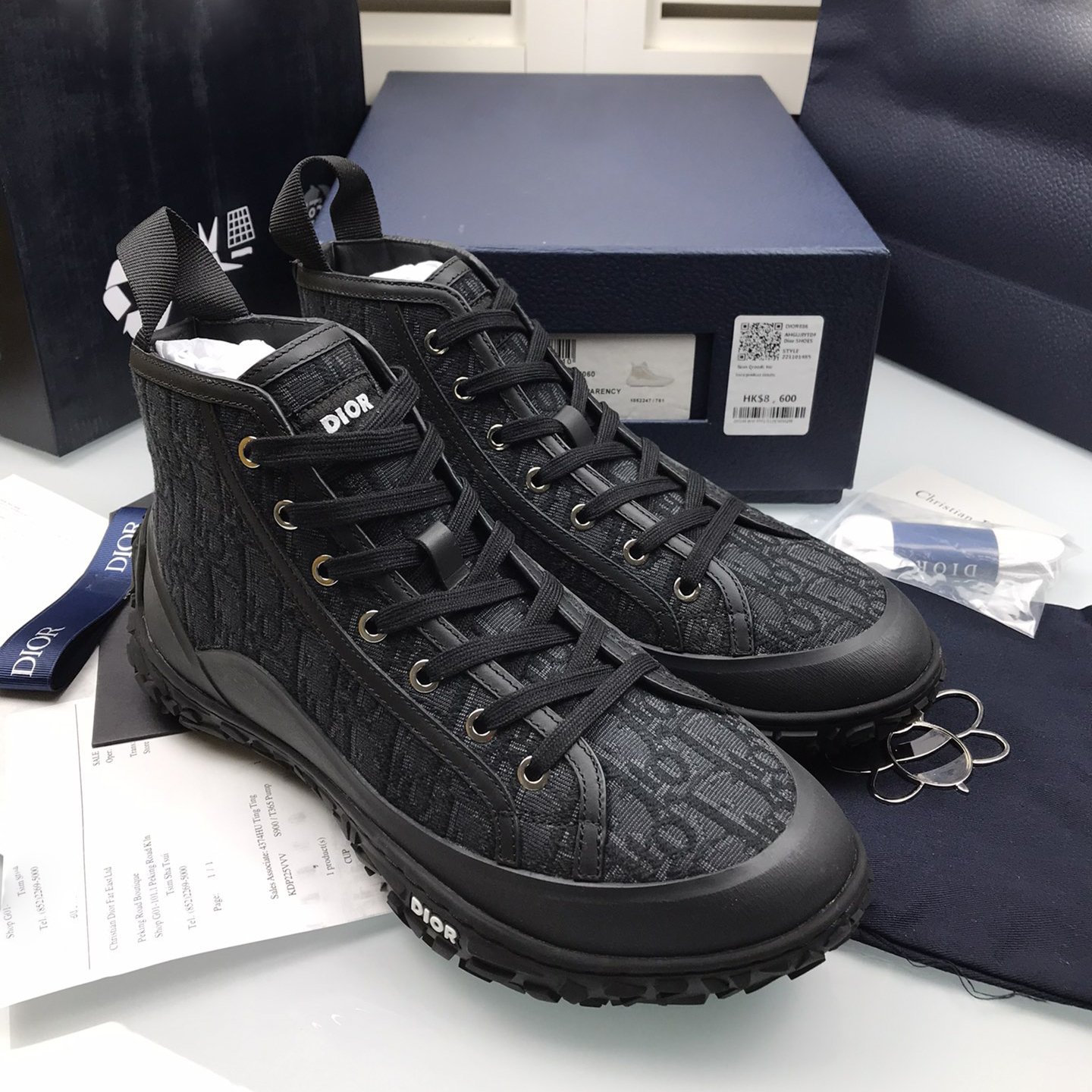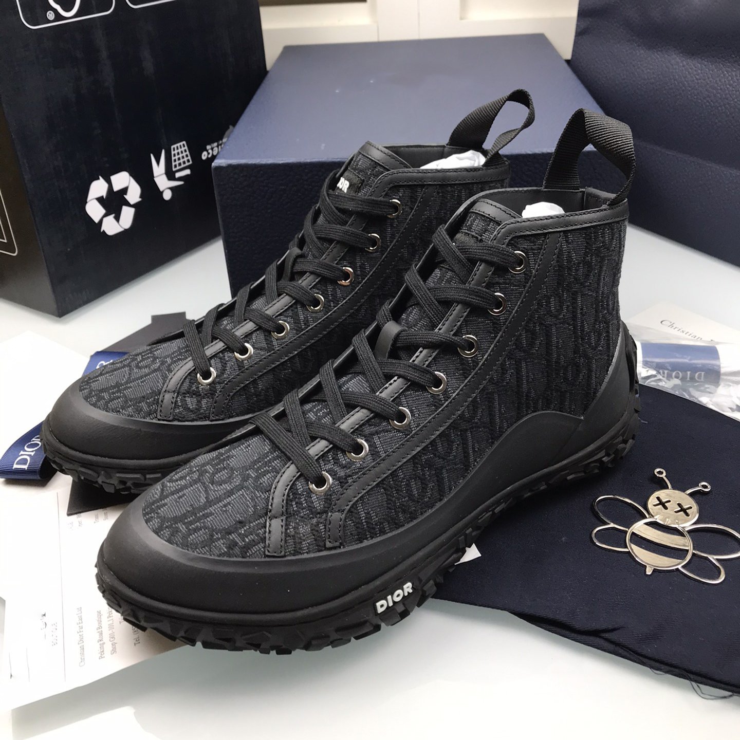 B28 High Top Sneaker Black Oblique Jacquard and Rubber