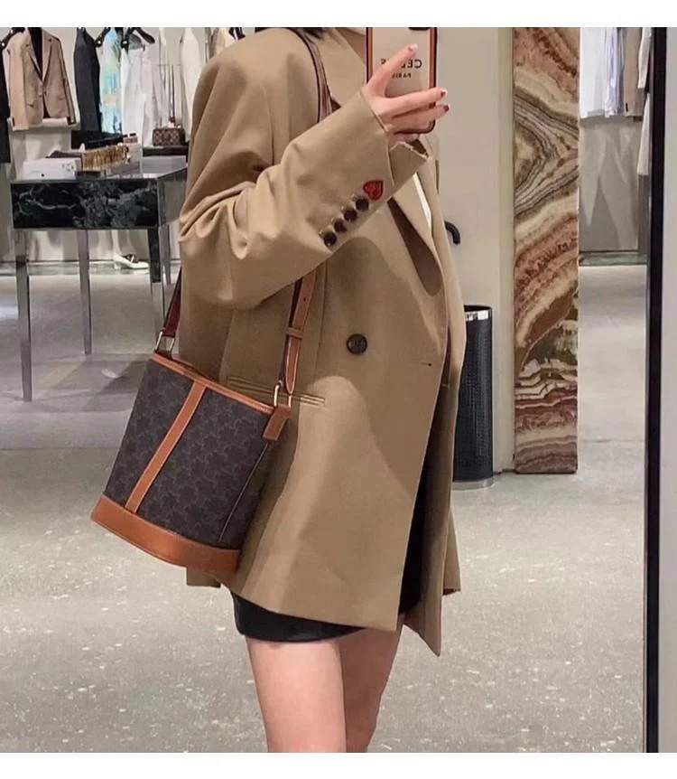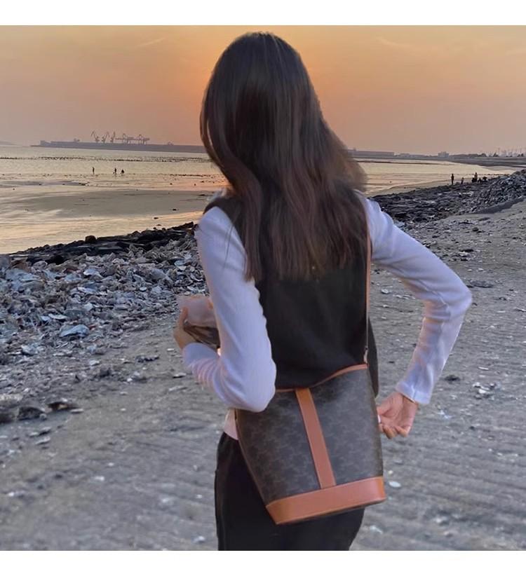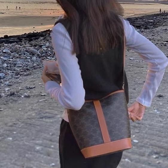 • New Genuine Leather Old Flower Vintage Bucket Bag 1024041128