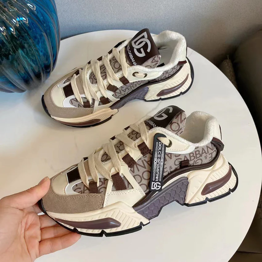 New leather thick sole color blocked dad shoes 1024071219