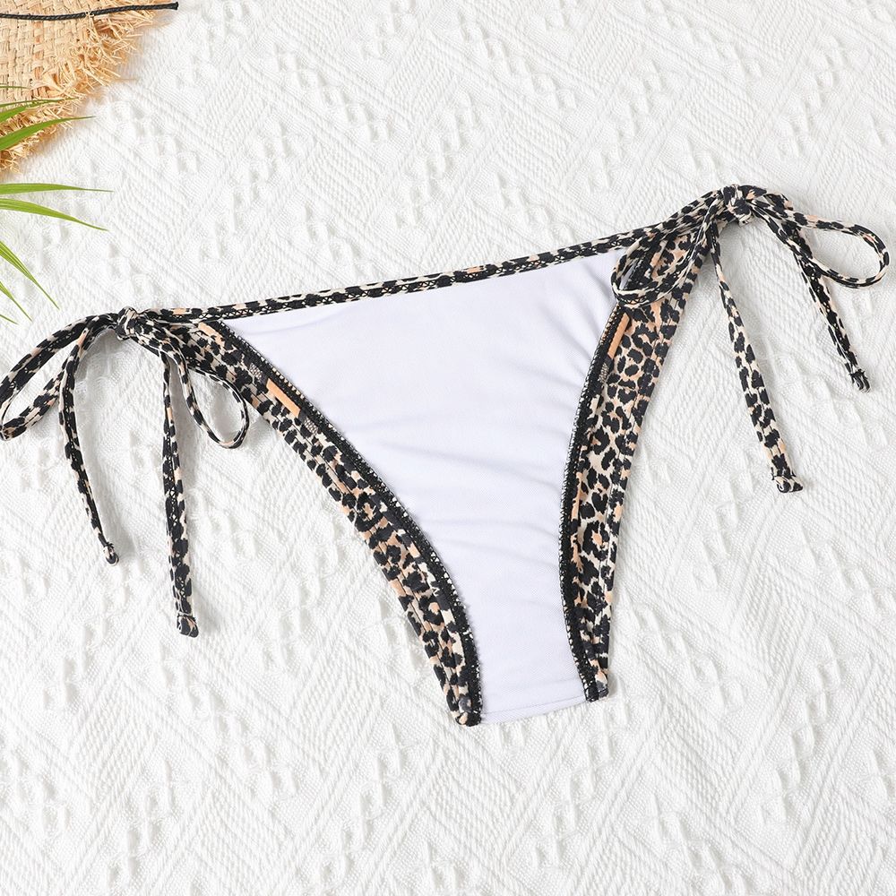 • Leopard print bikini strap gathered low waist XJ10032314