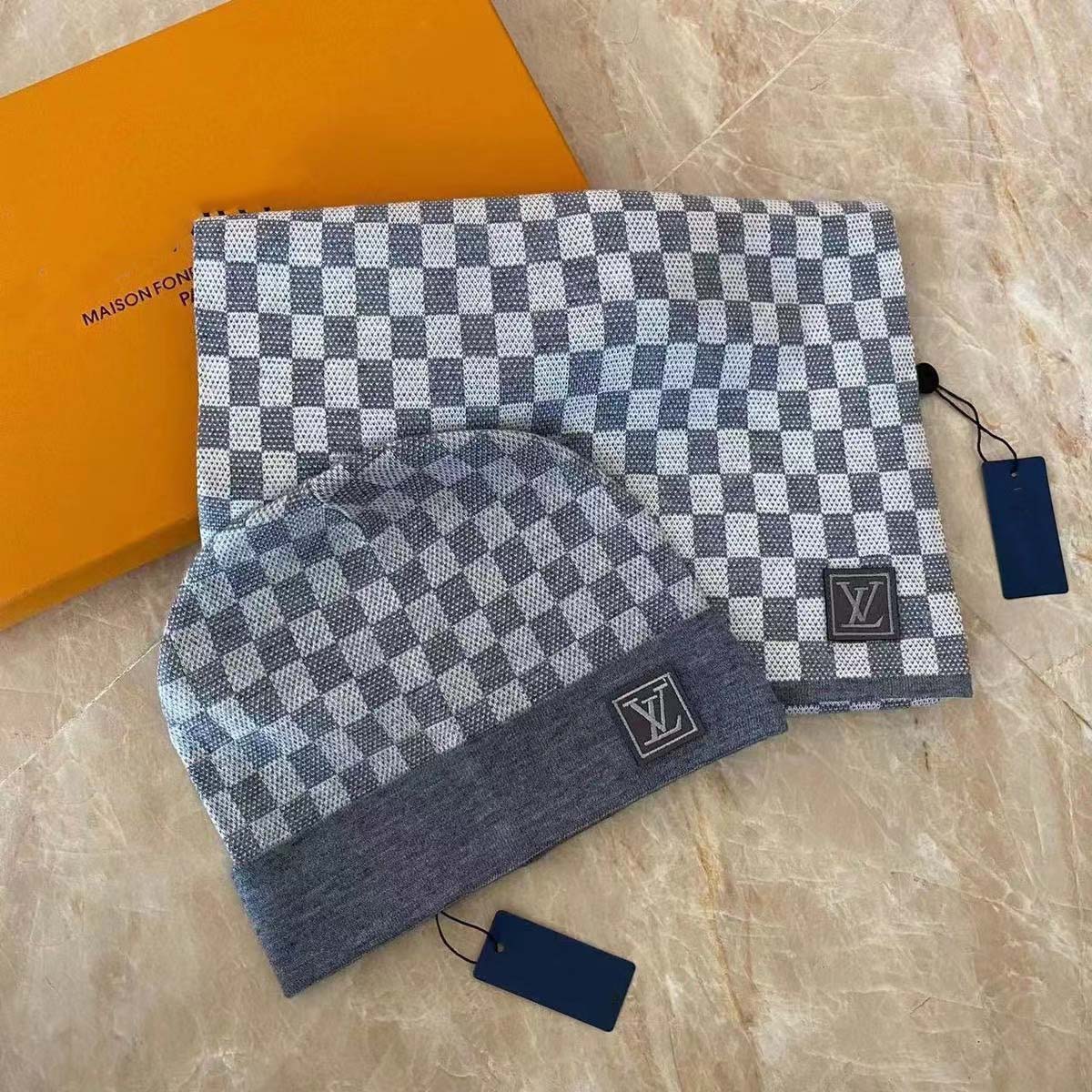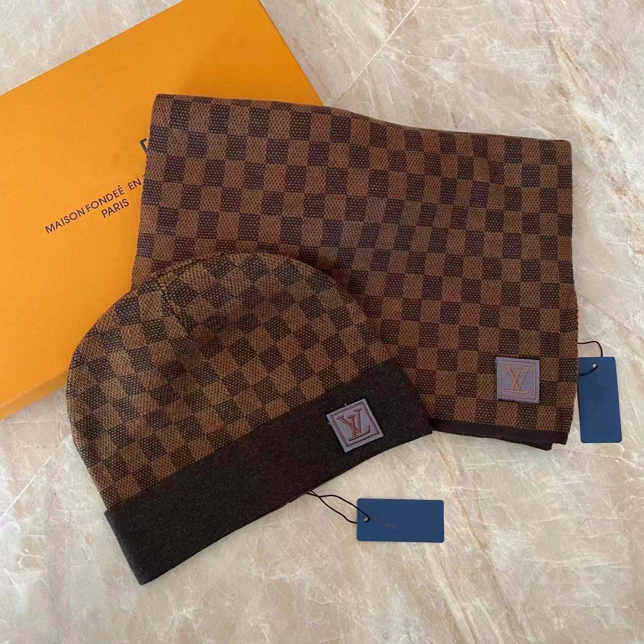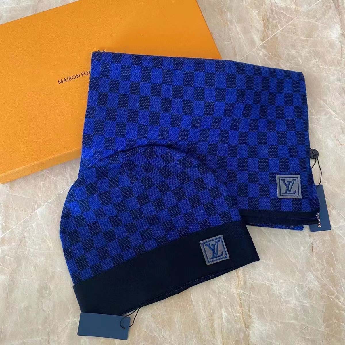 Men's wool hat and scarf suit, winter dark knitted wool 03