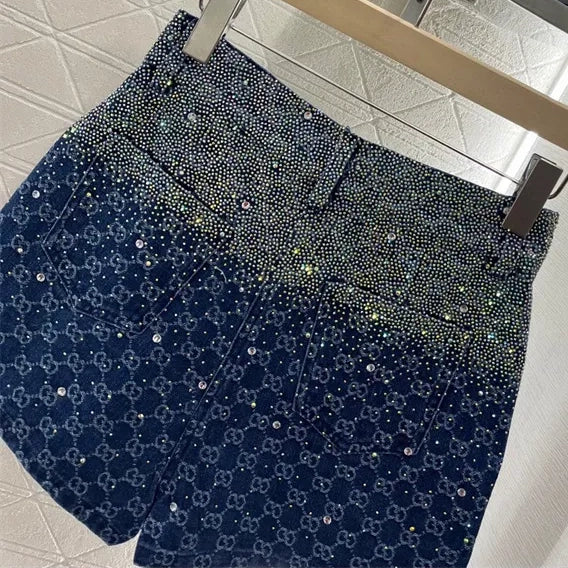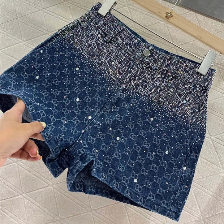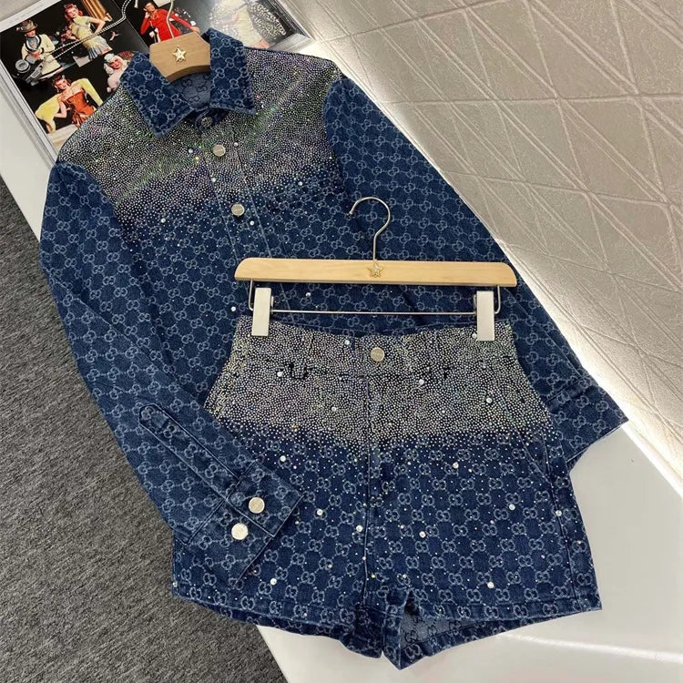 New Arrival Lapel jacquard hot diamond shirt fashion shorts 1025042810