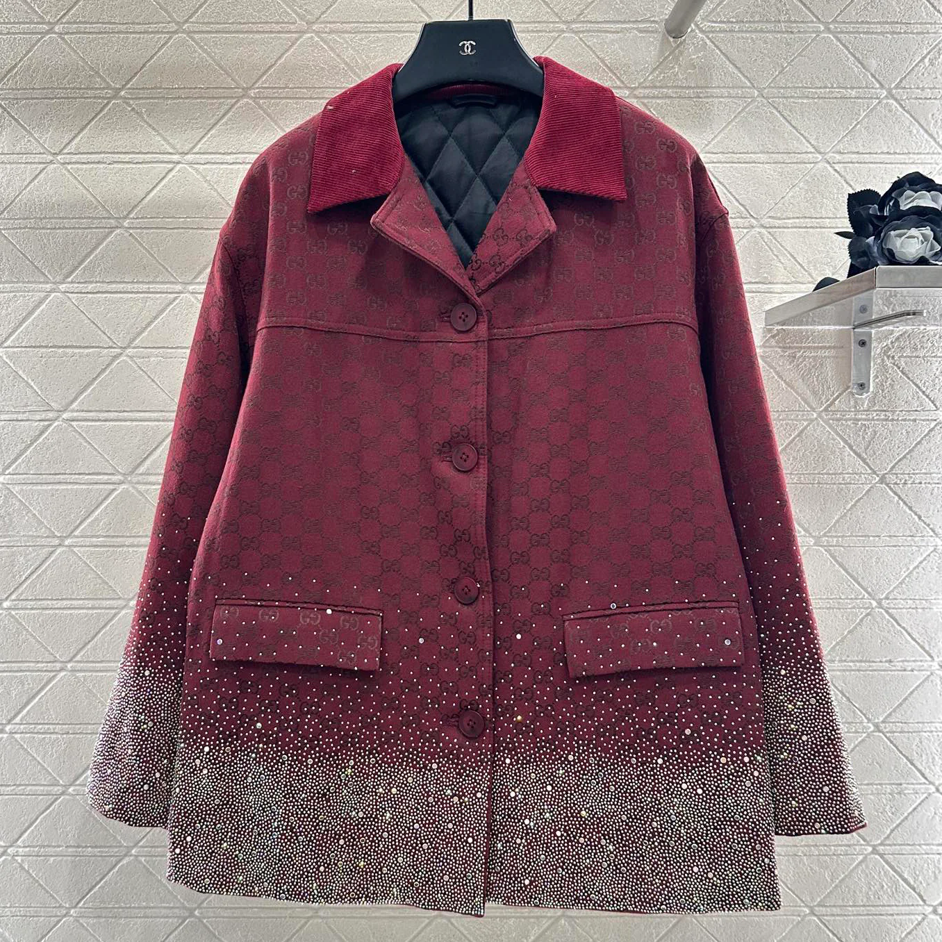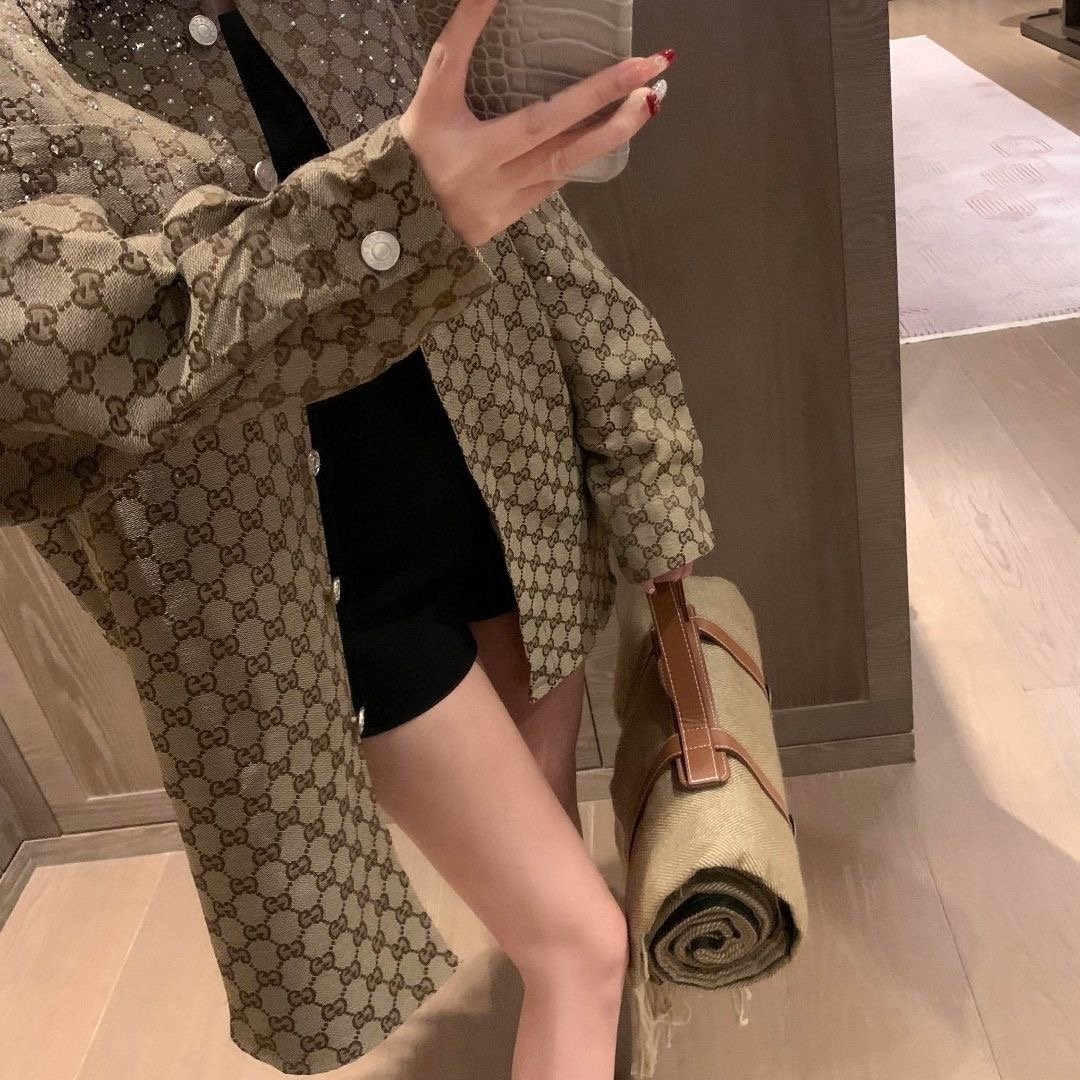 G Home Jacquard Splicing Fur Coat 1024102911