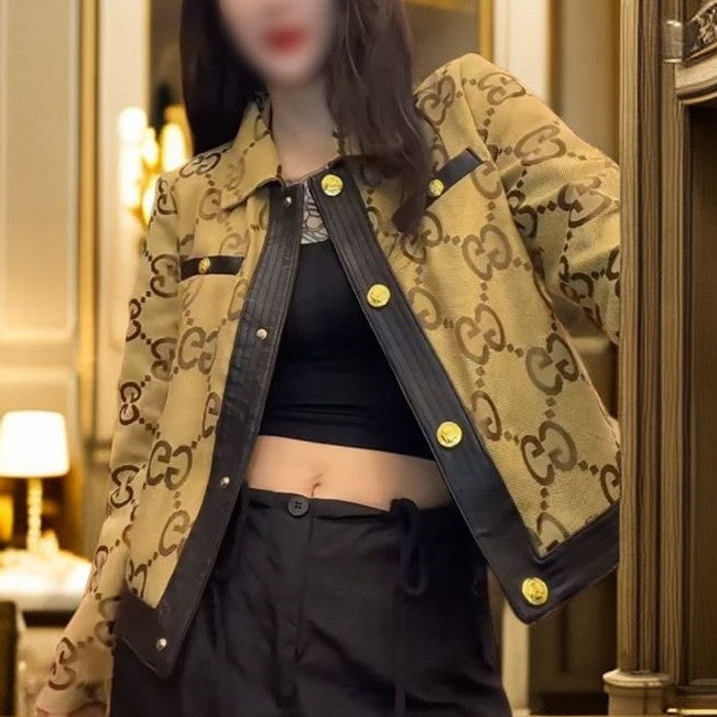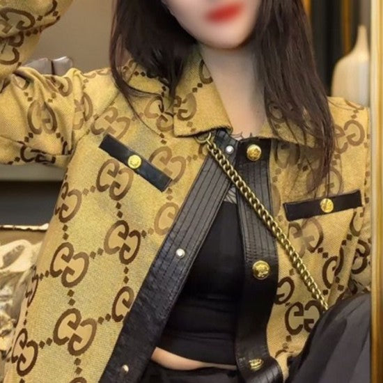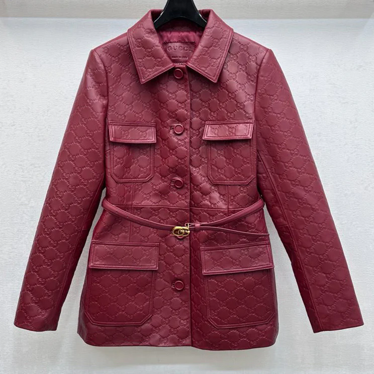 New Double G Lapel Short Leather Jacket 1025102402