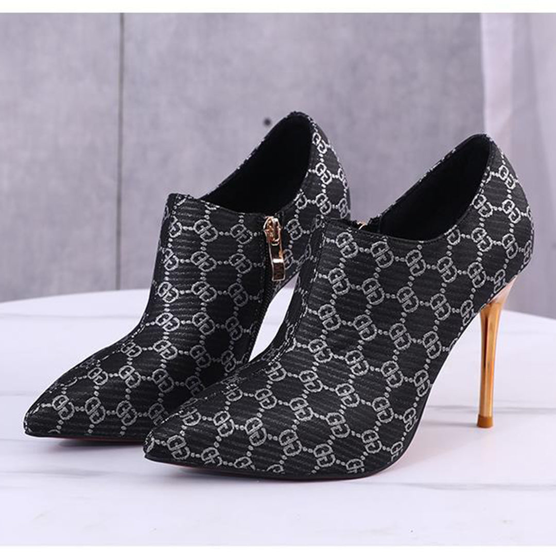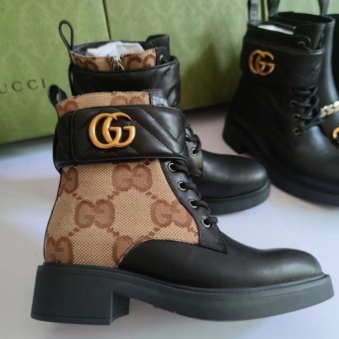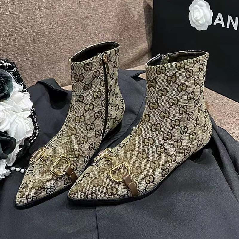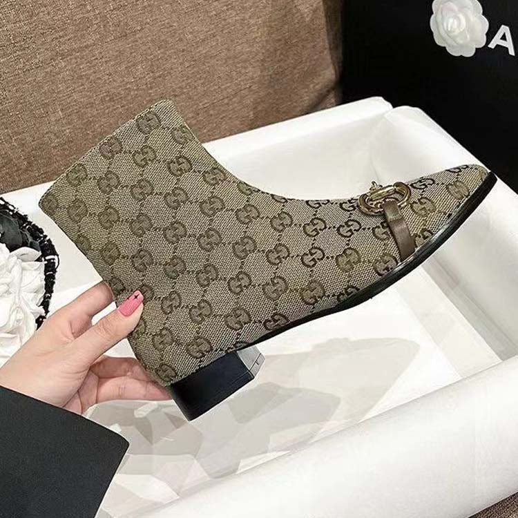 Women's canvas shoes with monogrammed zipper ankle boots
