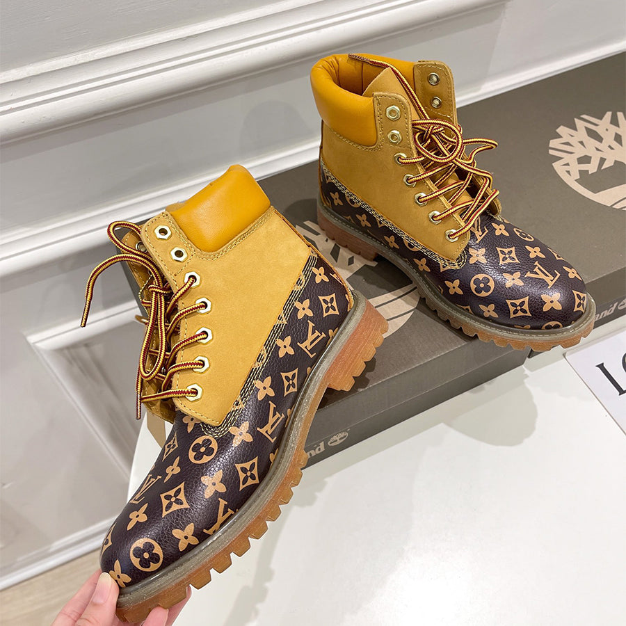 New Brown Versatile High-Top Patchwork Boots