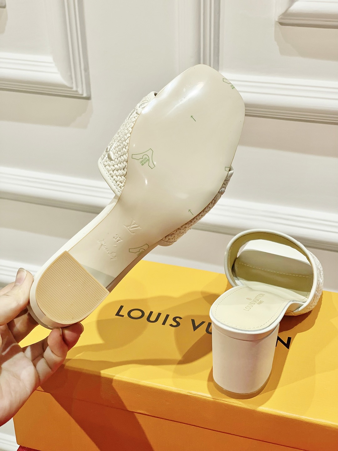 Exquisite leather trim, cleverly matched with the iconic embroidered double T Logo. Striped jacquard upperNappa leather lining✨Upper material: original fabric✨Shoe lining material; sheepskin✨Sole material: leather bottom