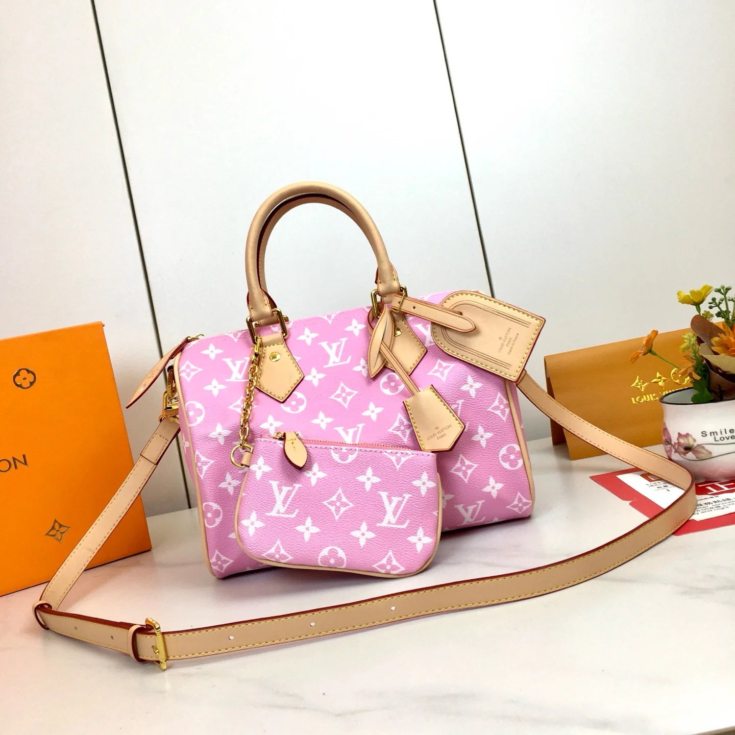 The Speedy P19 Bandoulière 25 Monogram Leather is crafted from supple cowhide leather and features a Monogram pattern that recreates the sophisticated look of a canvas print. Dazzling metal pieces, sheepskin lining and a plaque testify to Creative Director Pharrell Williams' meticulous attention to detail.