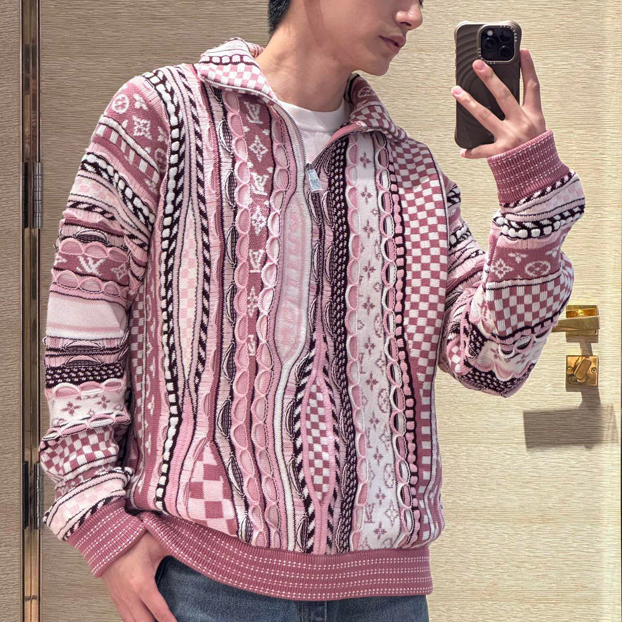 Unisex Vintage-Print Knit Cardigan 1025103101