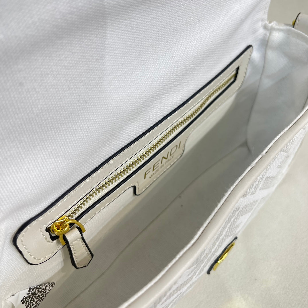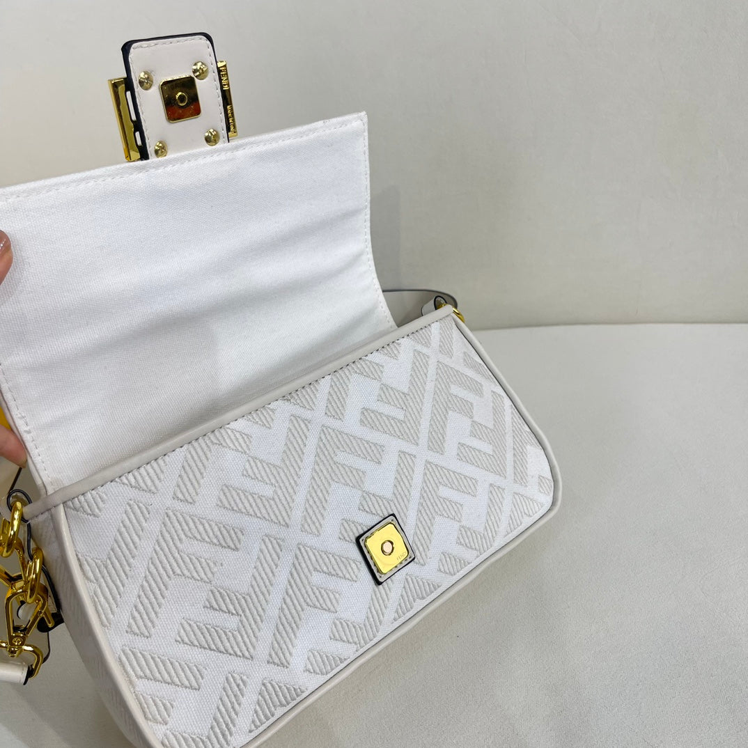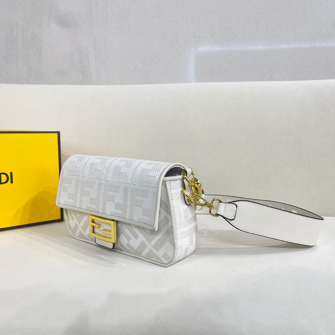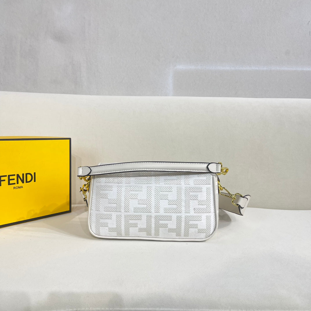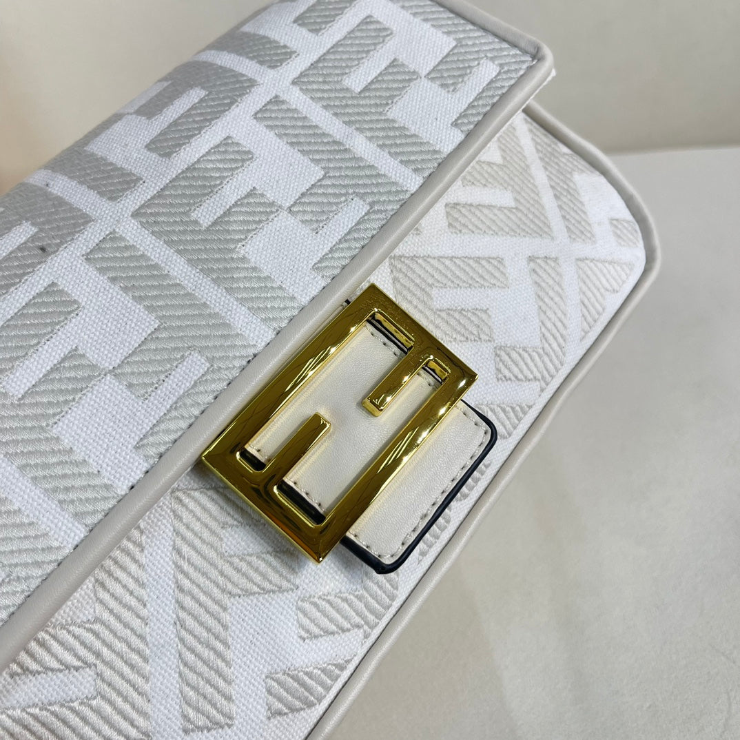 F Print Embroidered Baguette Bag XC0823040743