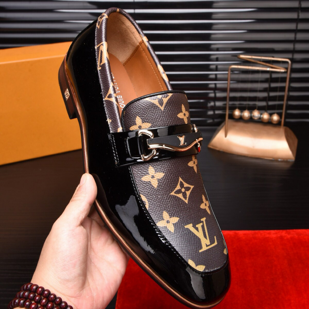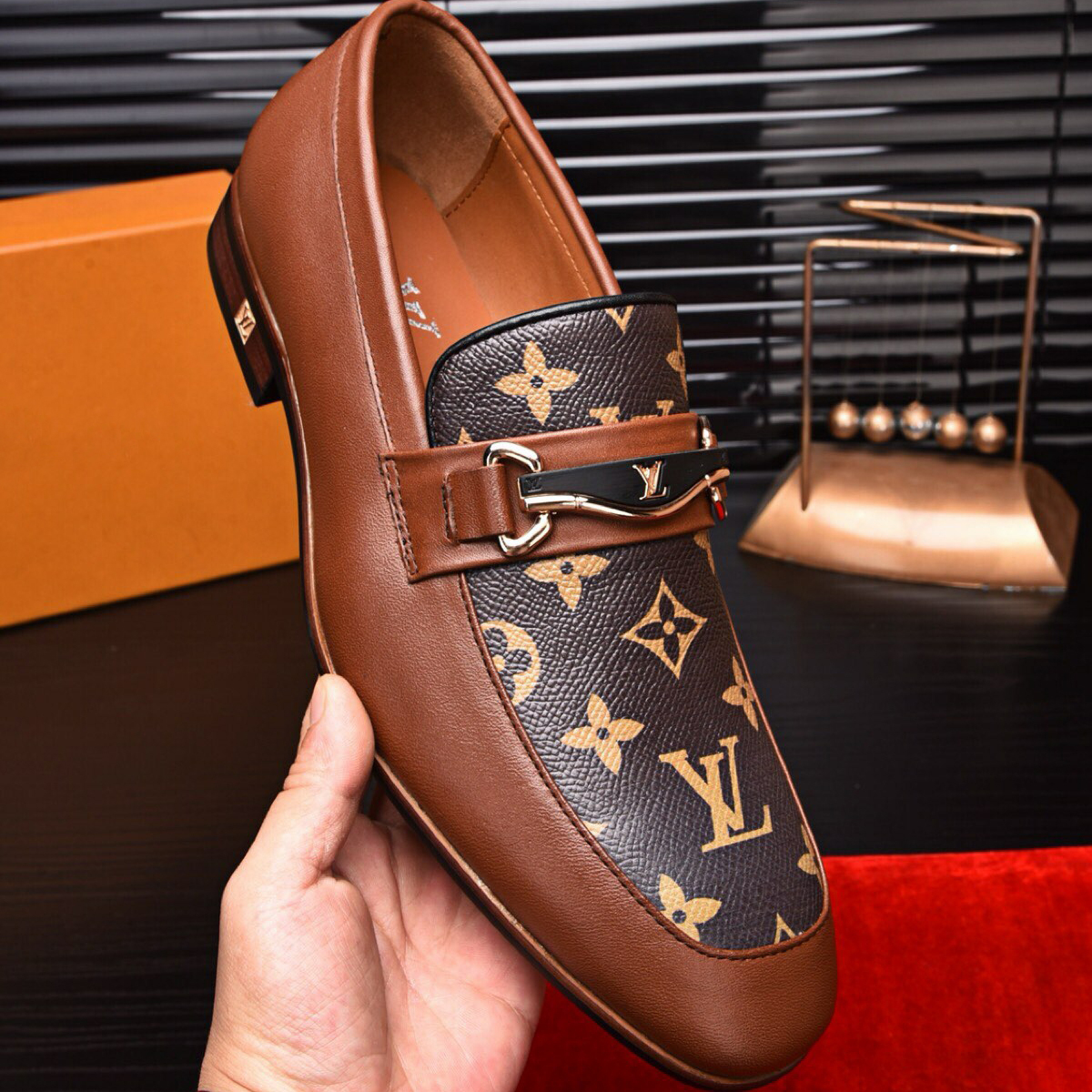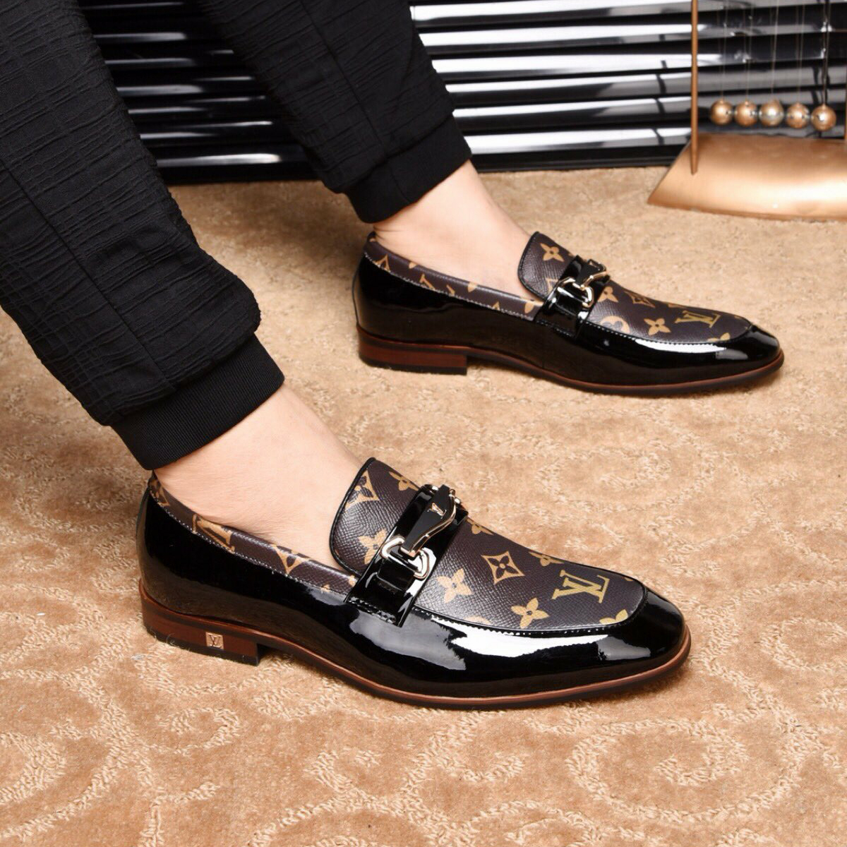 Men's Fashion Luxury V Logo Leather Shoes