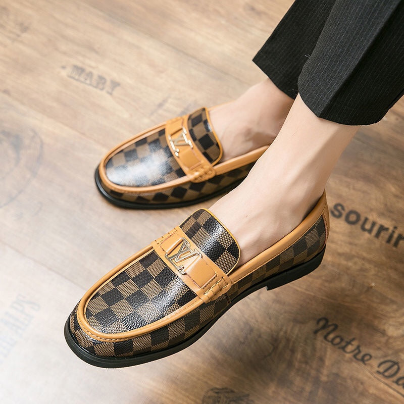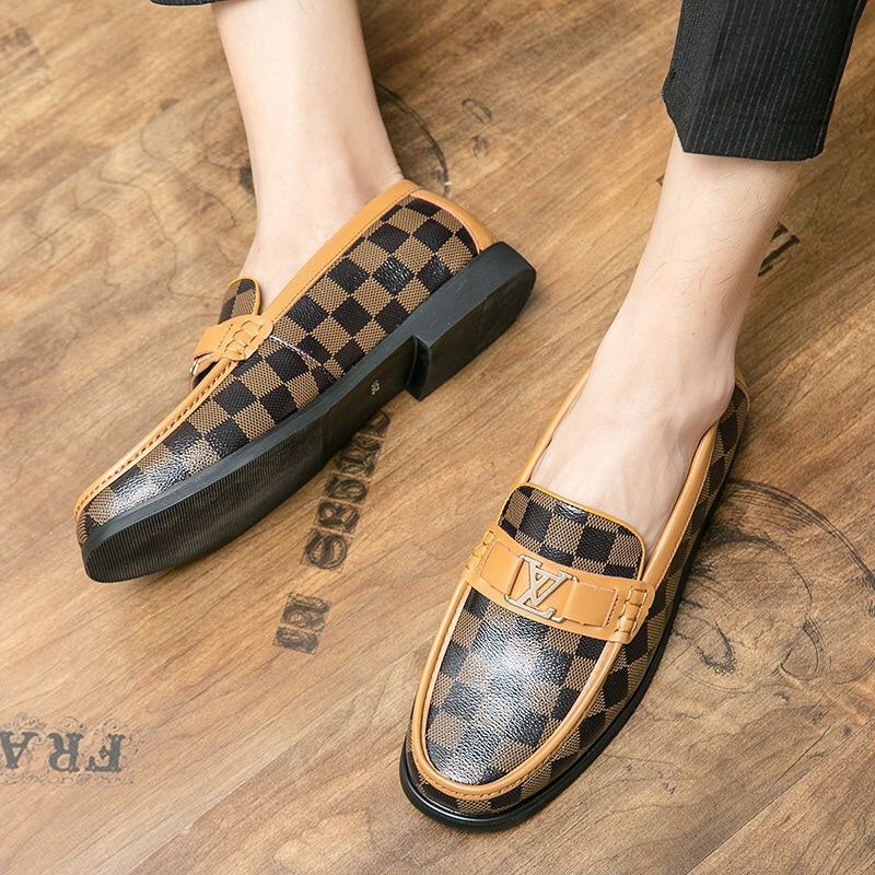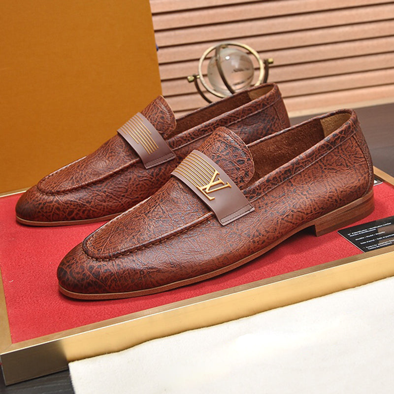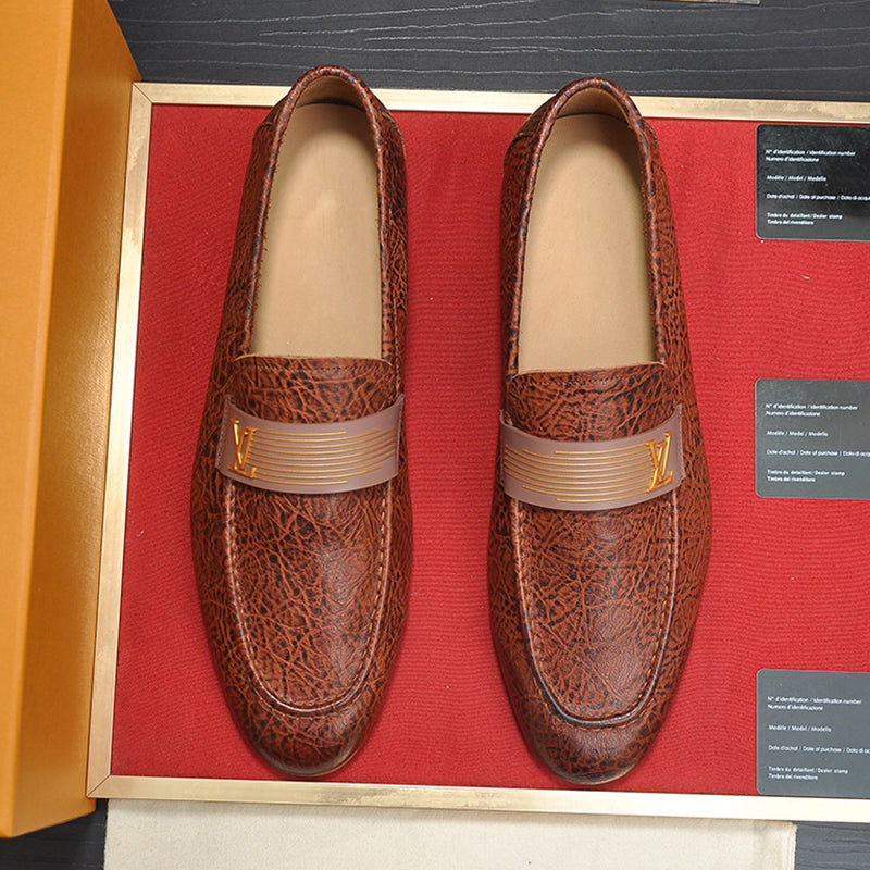 Men's V-shaped flower brown loafers