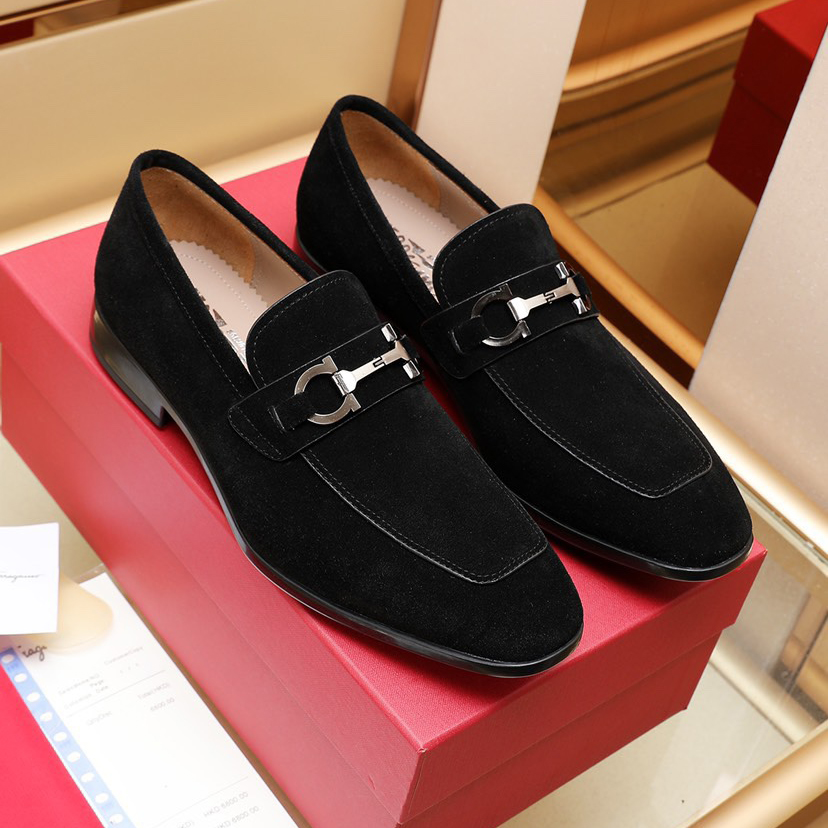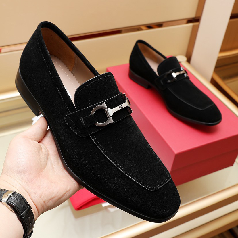Black Suede Double Buckle Fashion Men's Casual Loafers