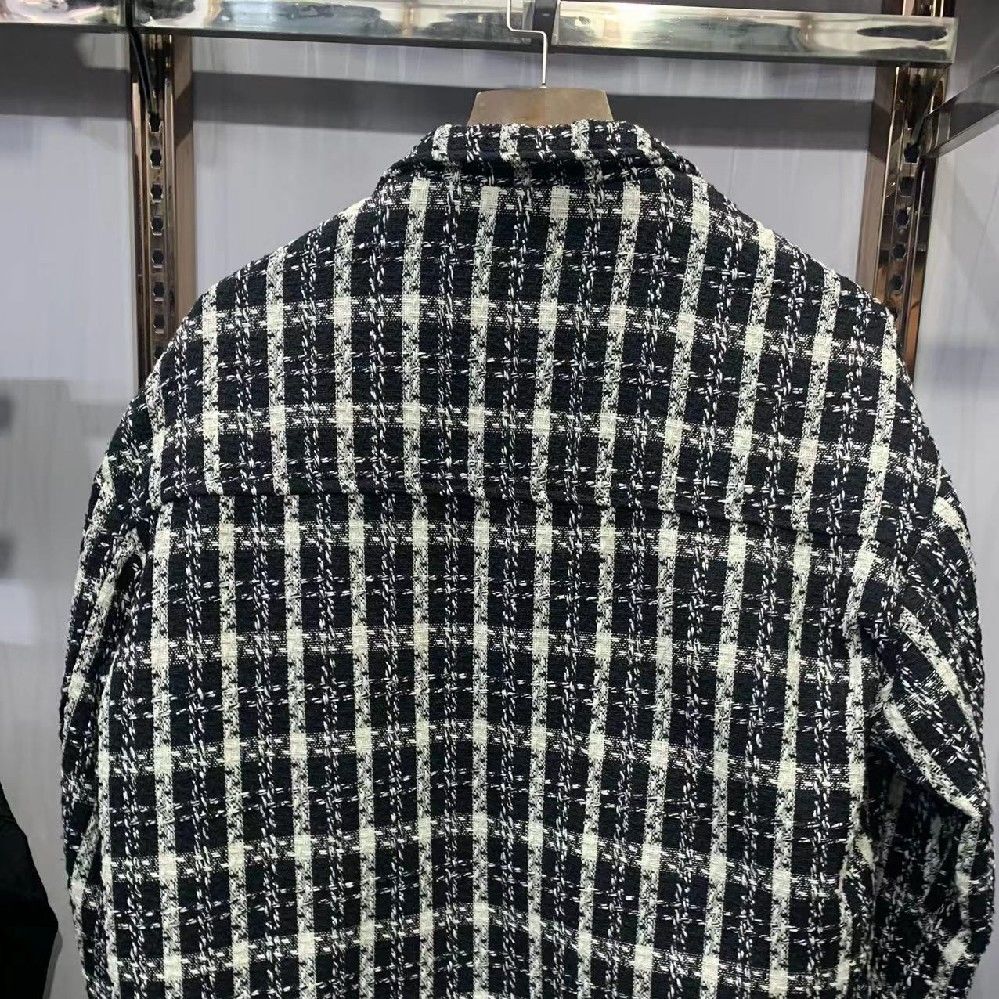 Retro Tweed Woven Plaid Slim Fit Jacket Men's Scented Coat