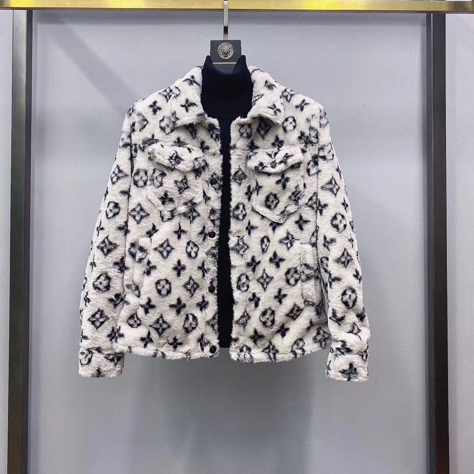 Autumn and winter new high-end men's lapel jacket trend fashion print frosted corduroy jacket
