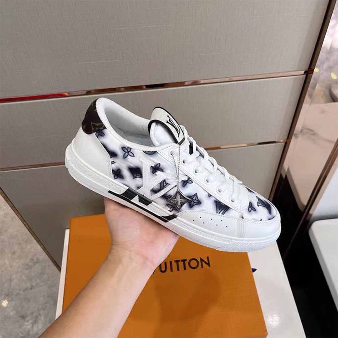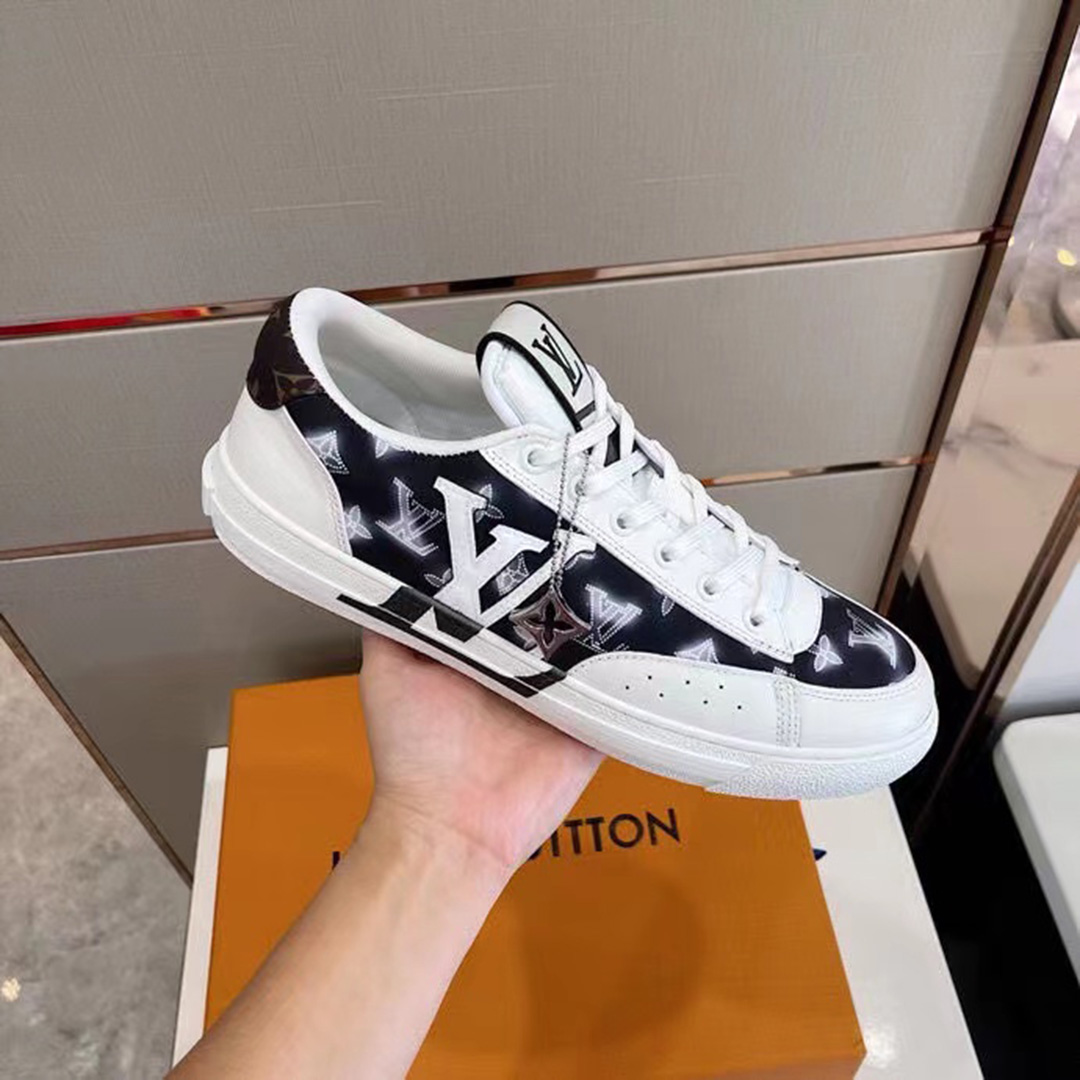 • Big V Logo Casual Low-Top Denim & Leather Panel Sneakers