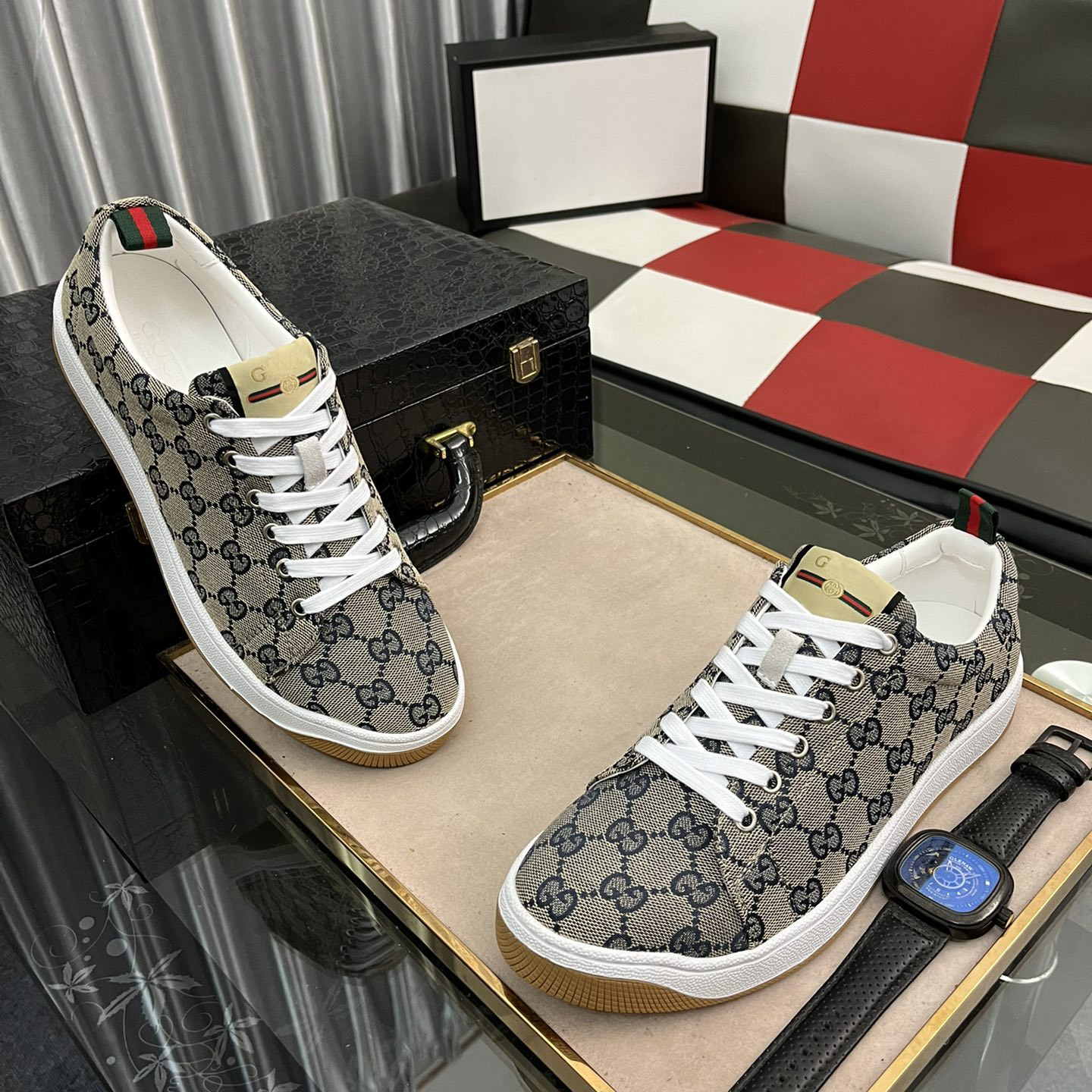 Classic Grey Allover Print Canvas Sneakers
