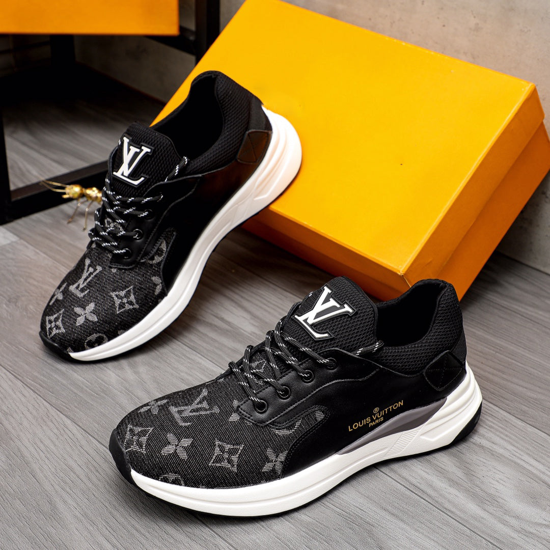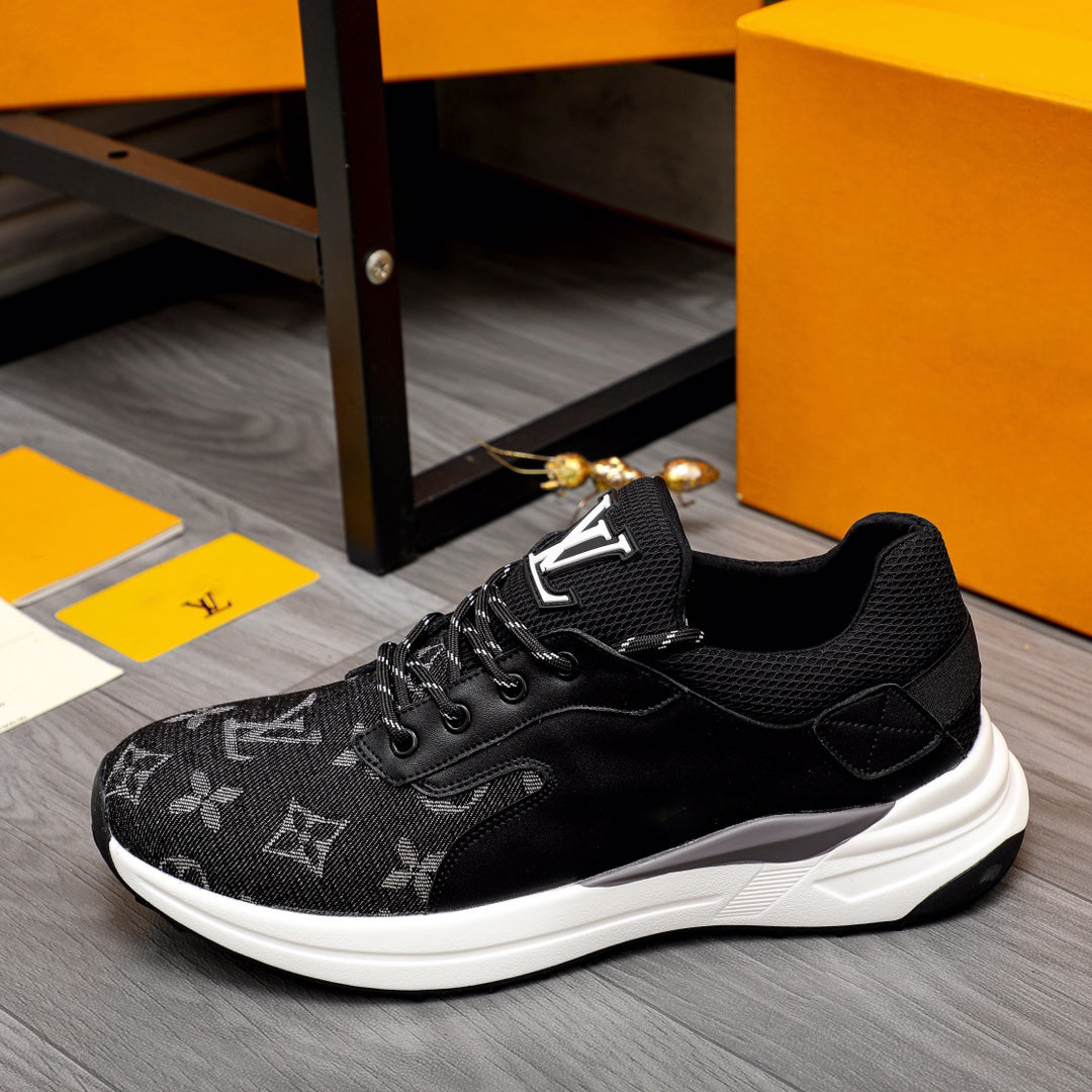 Black embroidered luxury logo men's sneakers running shoes