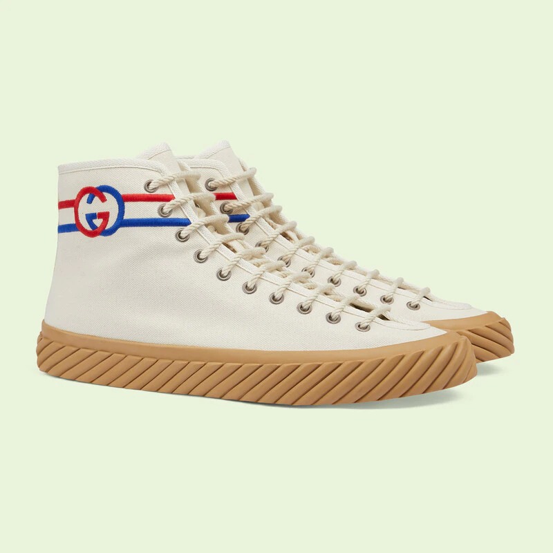 L blue panel high-top sneakers