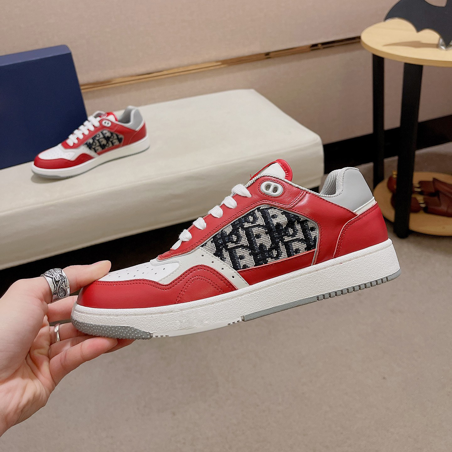 Men's Fashion Luxury V Logo Red and White Sneakers