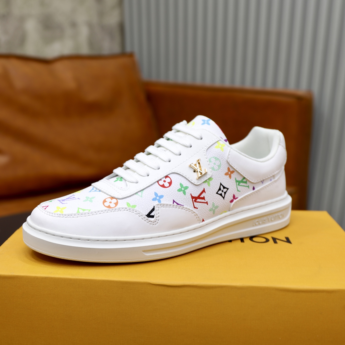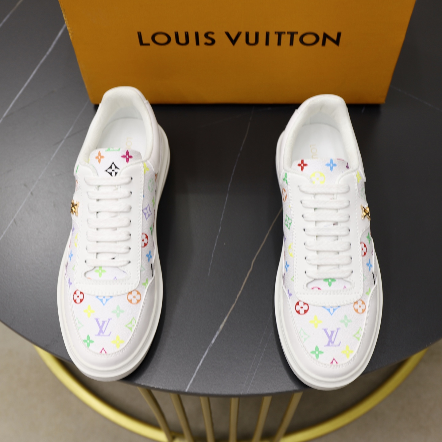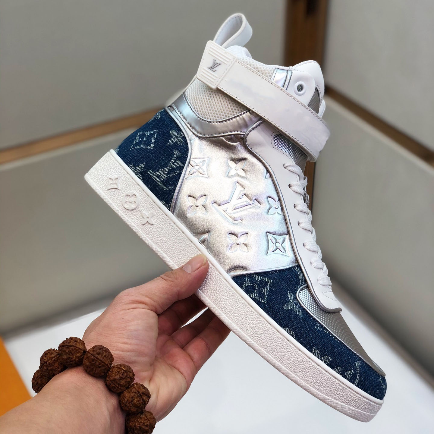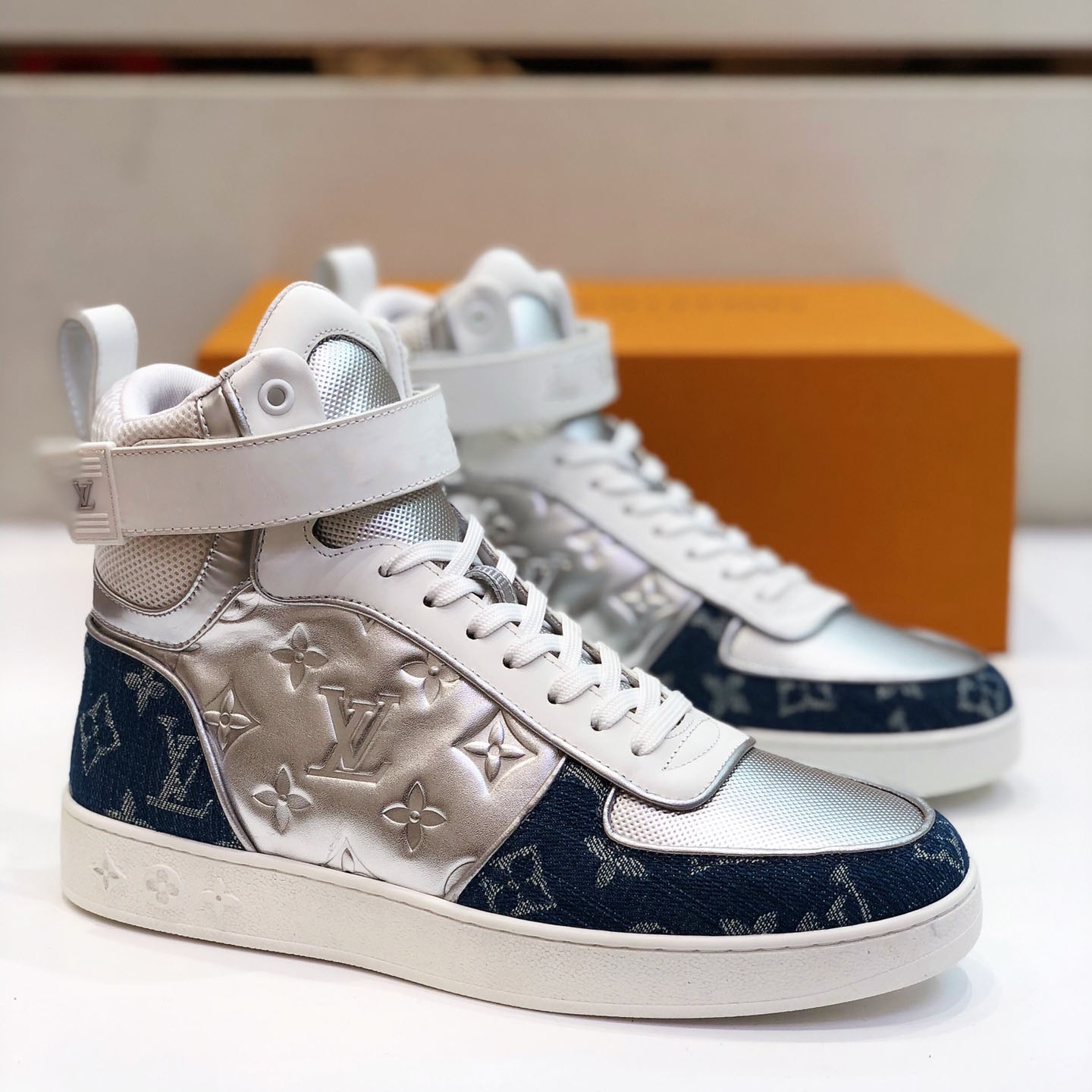 Hight-Top White&Gold Monogram Luxembourg Sneaker
