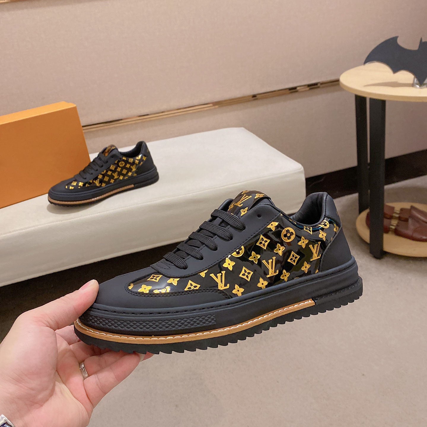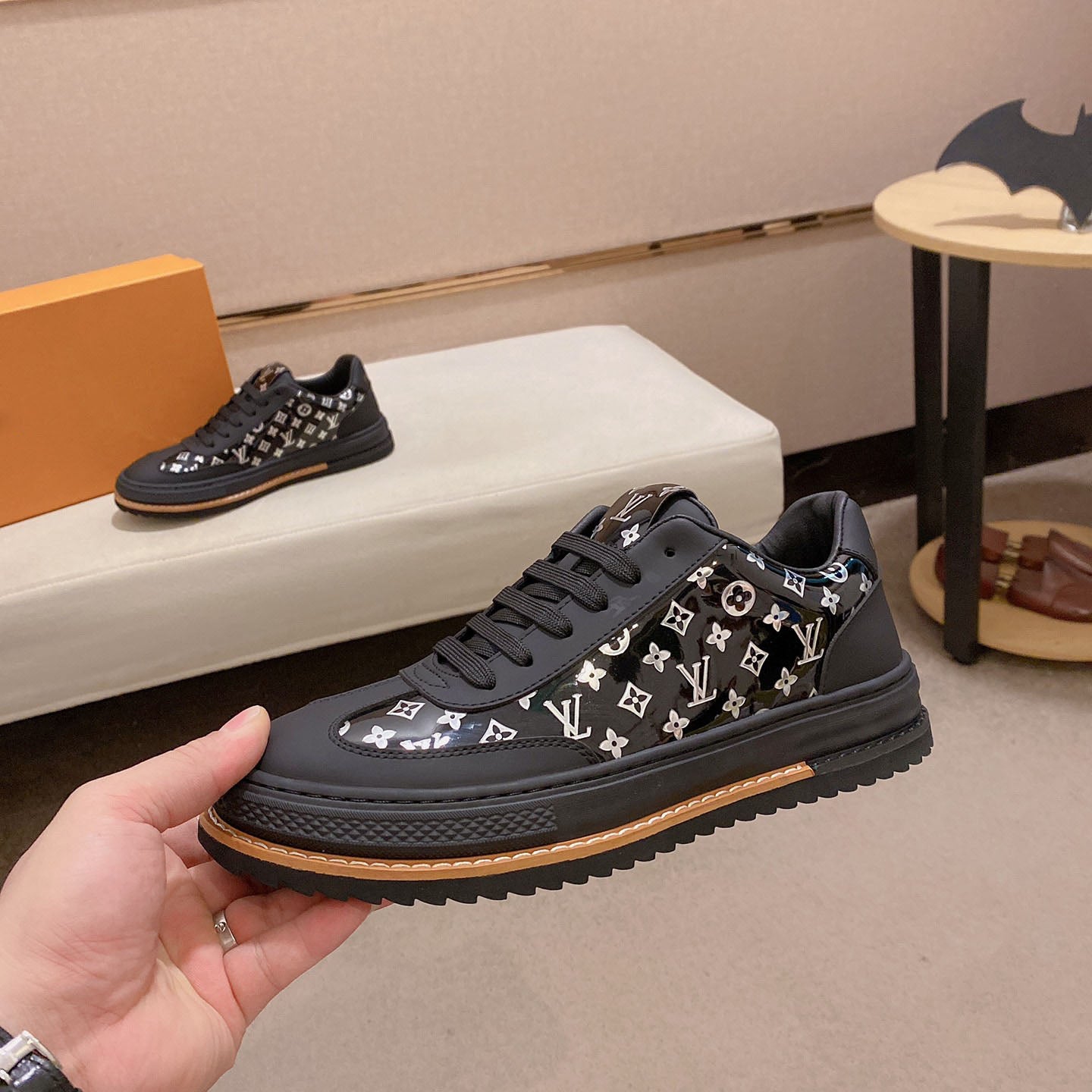 V Embossing Black Monogram Sneakers