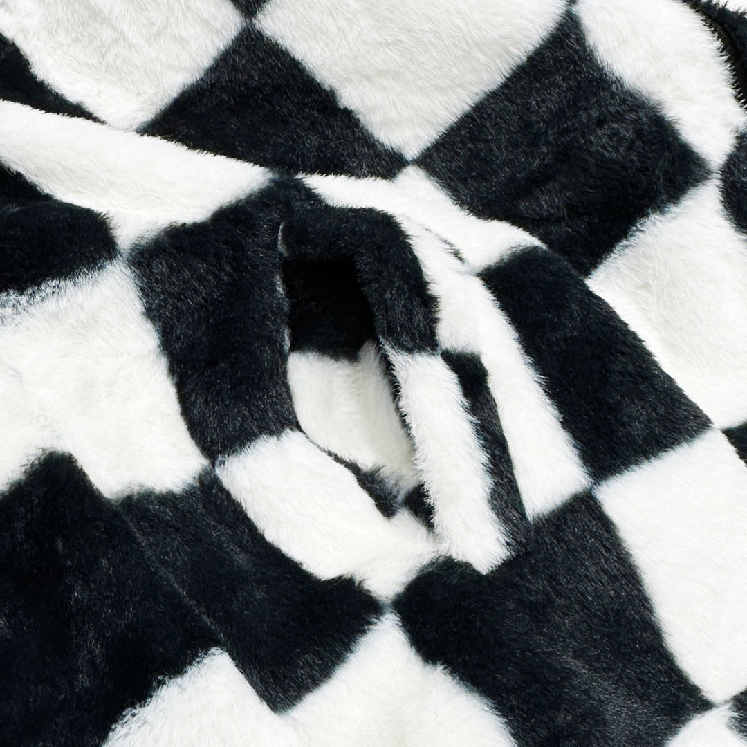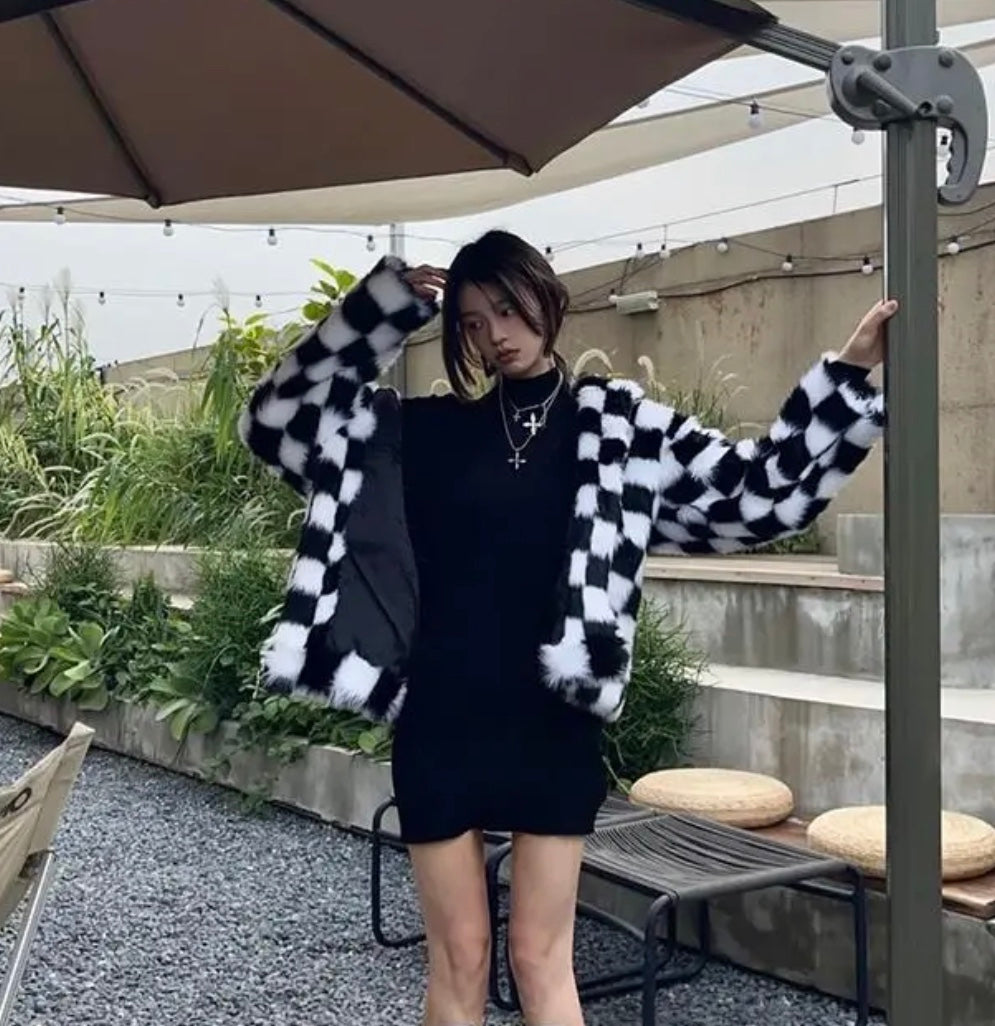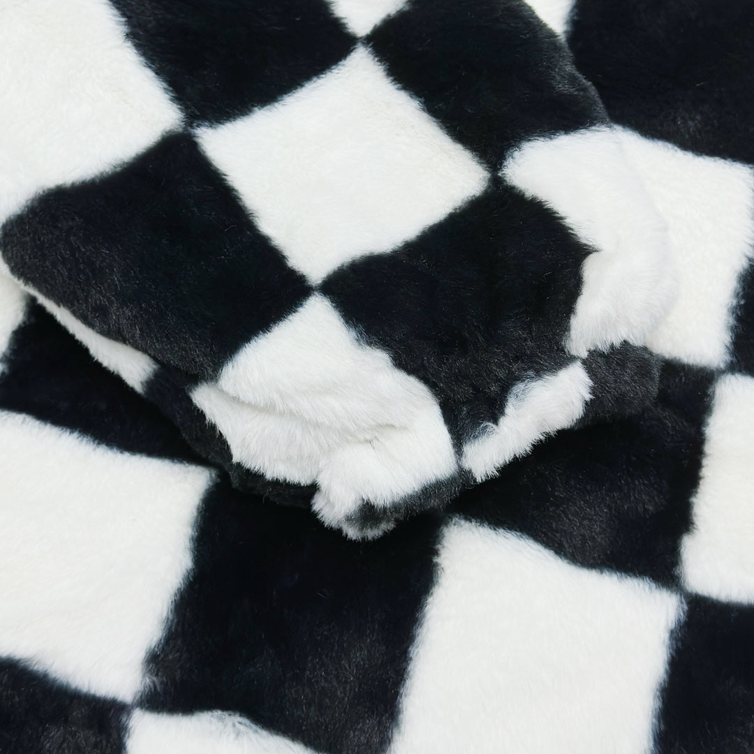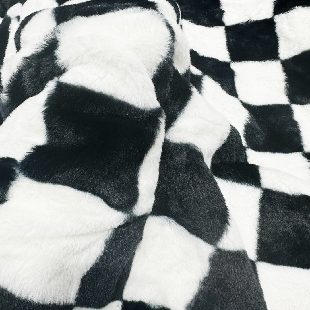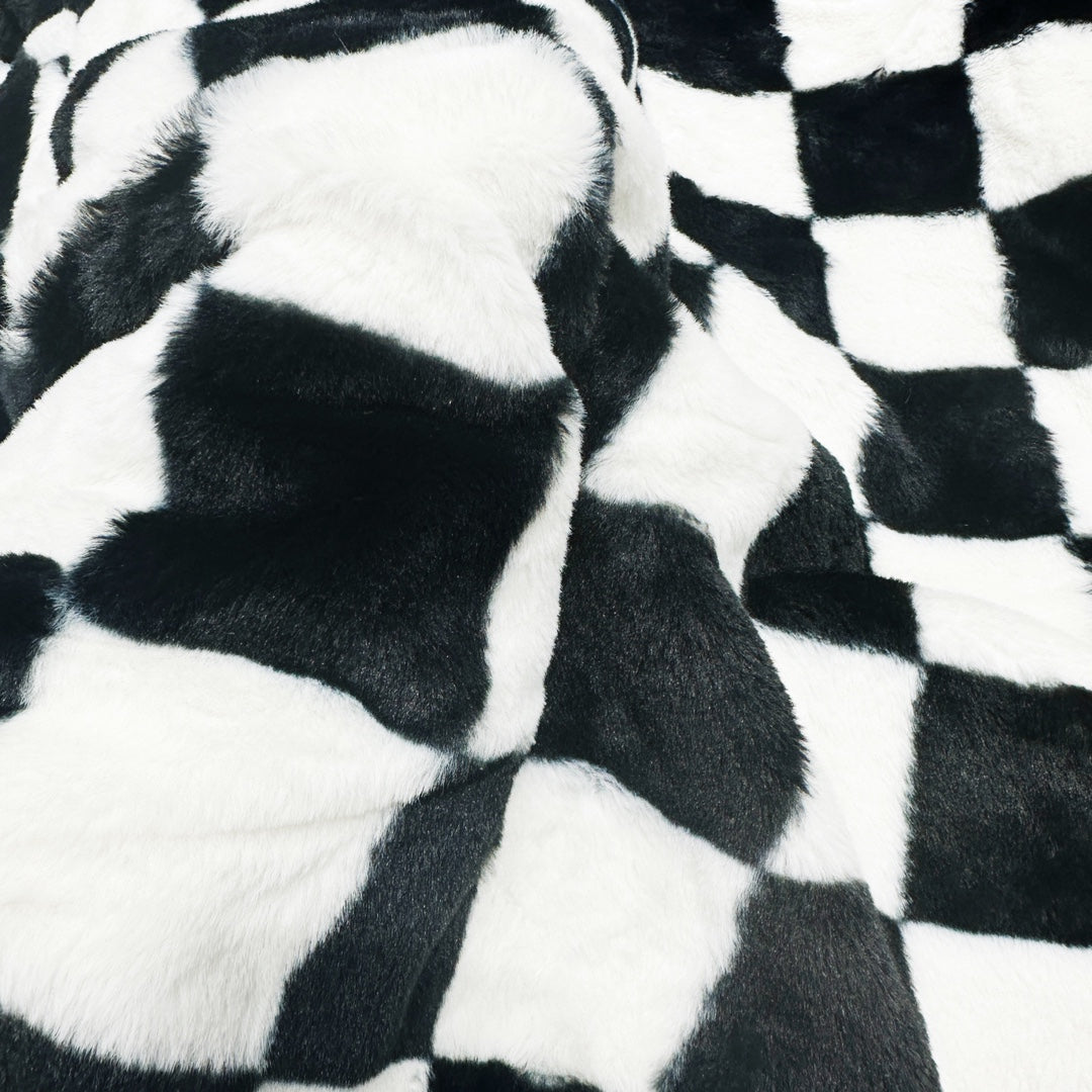 All-over checkerboard hooded rabbit fur jacket XC0823101709