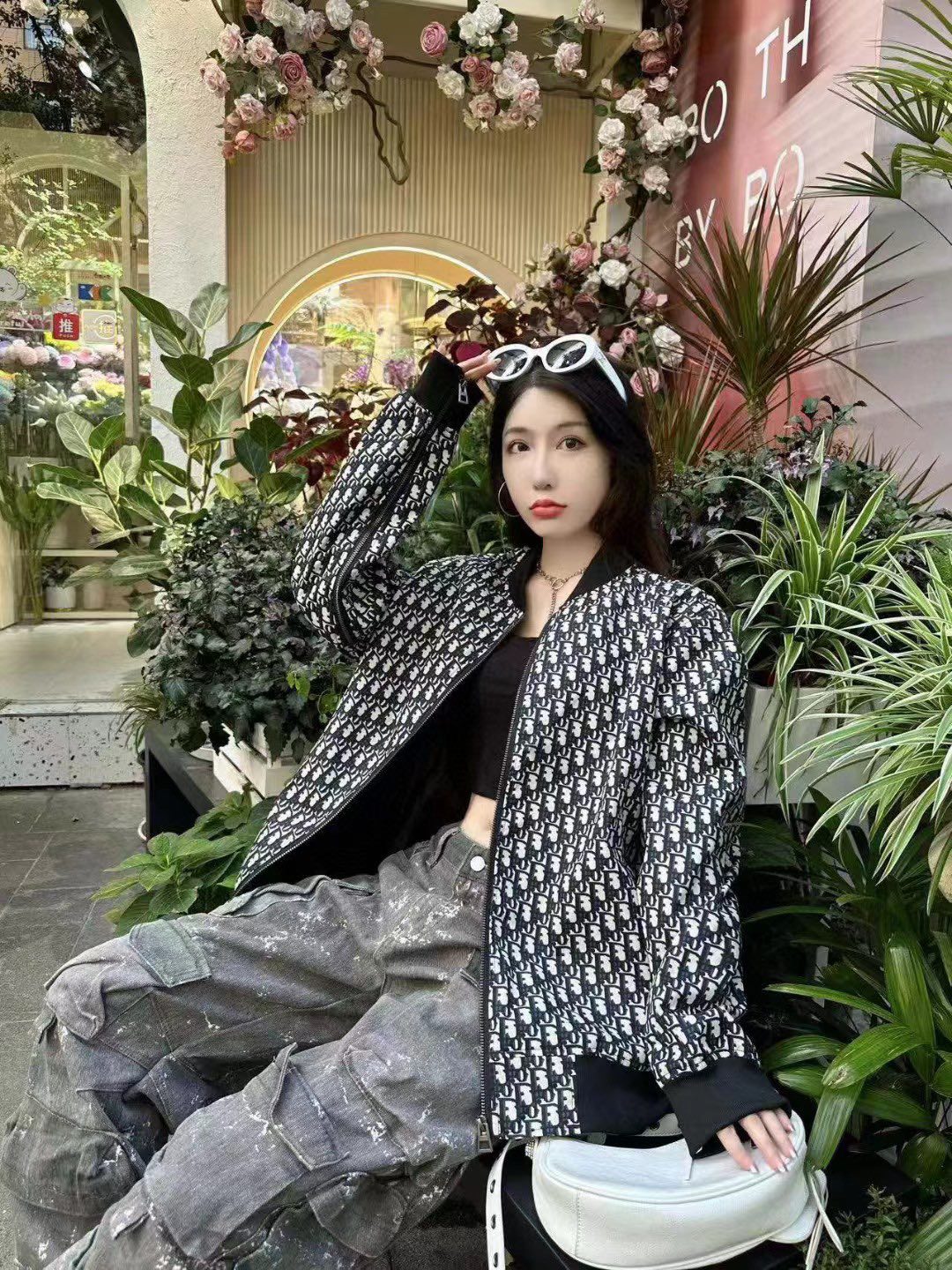 • New style double-layered two-color baseball uniform cardigan jacket with old flower all over printing XC0823092717