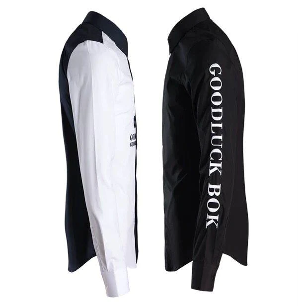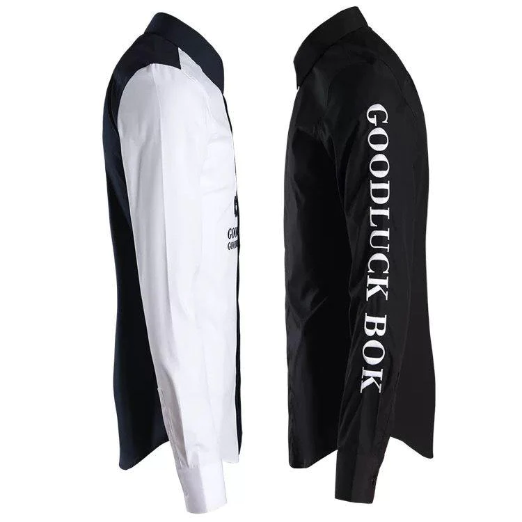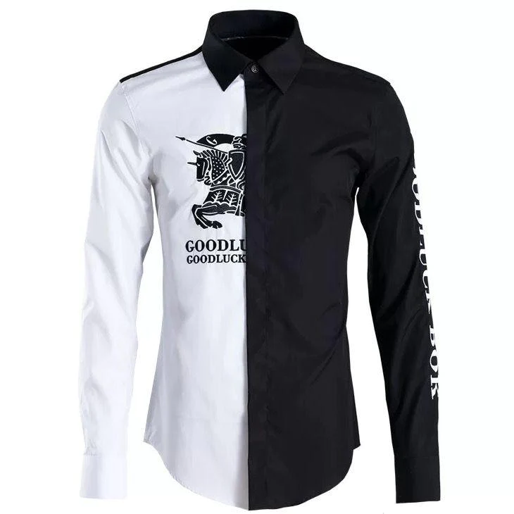 clothing style details: contrast color, printing