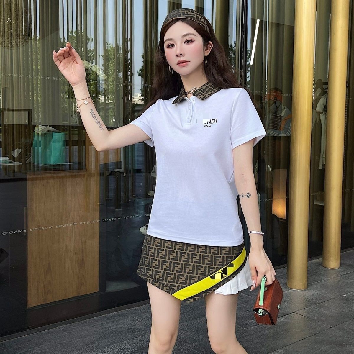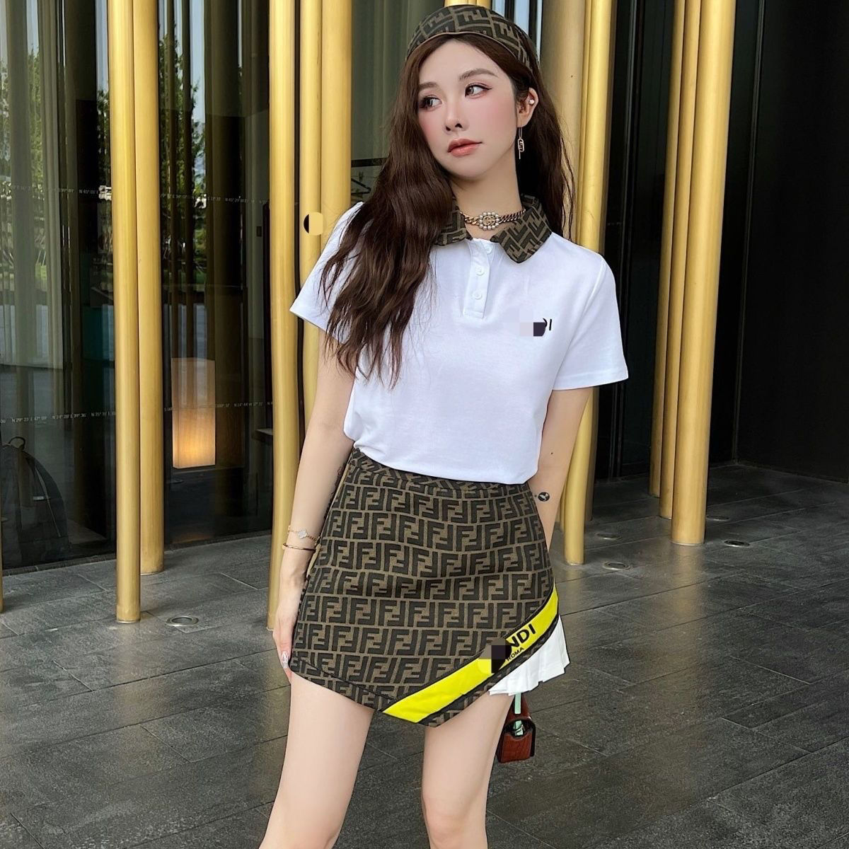 • Polo shirt with presbyopic letter pleated skirt slimming suit XC0823071801