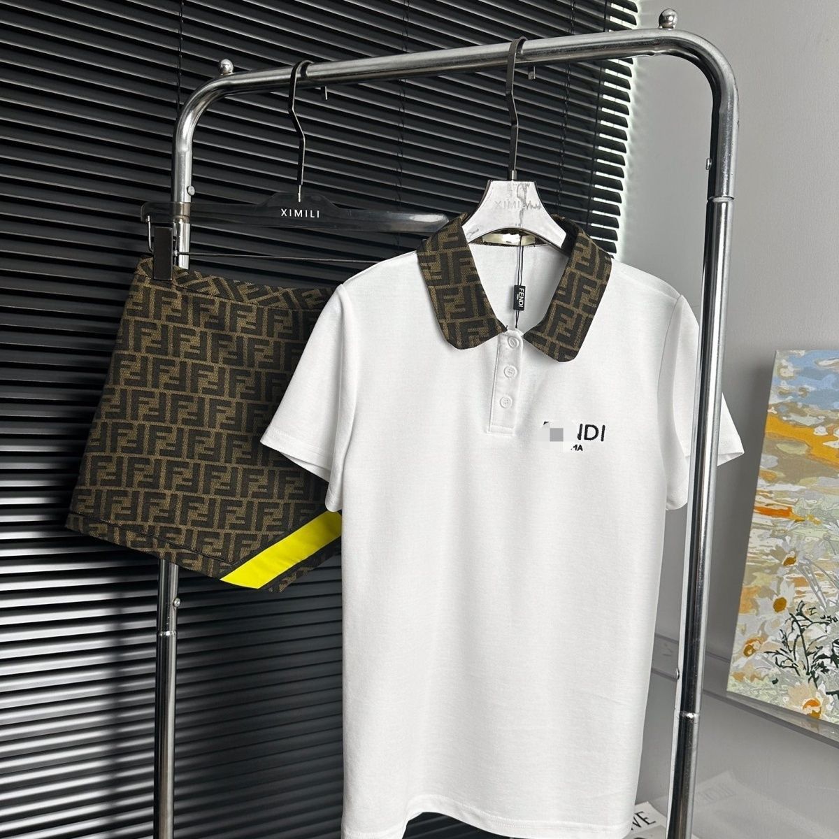 Polo shirt with presbyopic letter pleated skirt slimming suit XC0823071801
