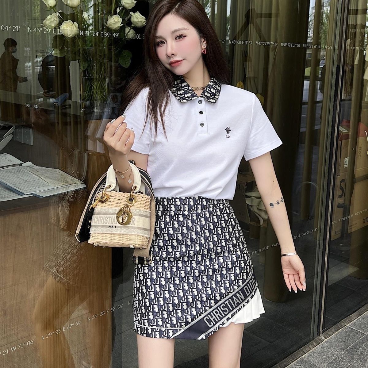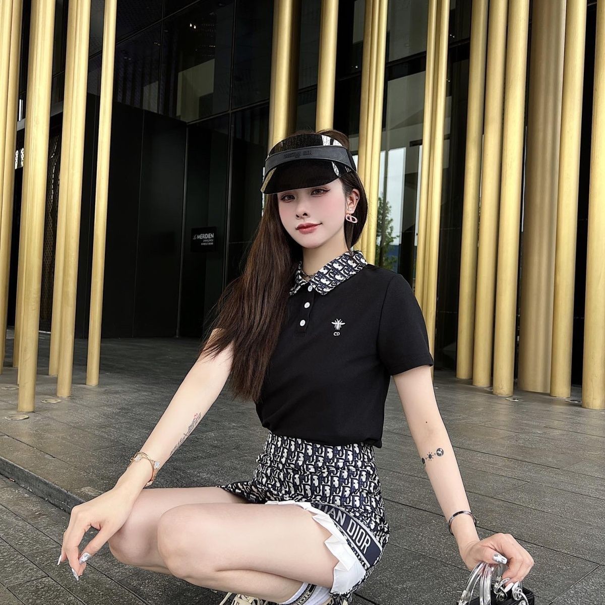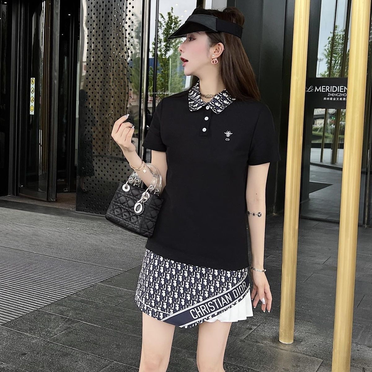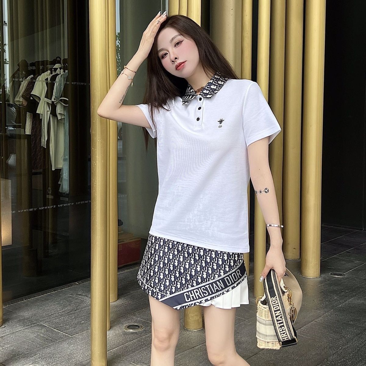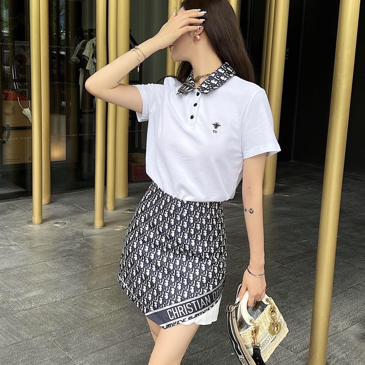 • Polo shirt with presbyopic letter pleated skirt slimming suit XC0823071802