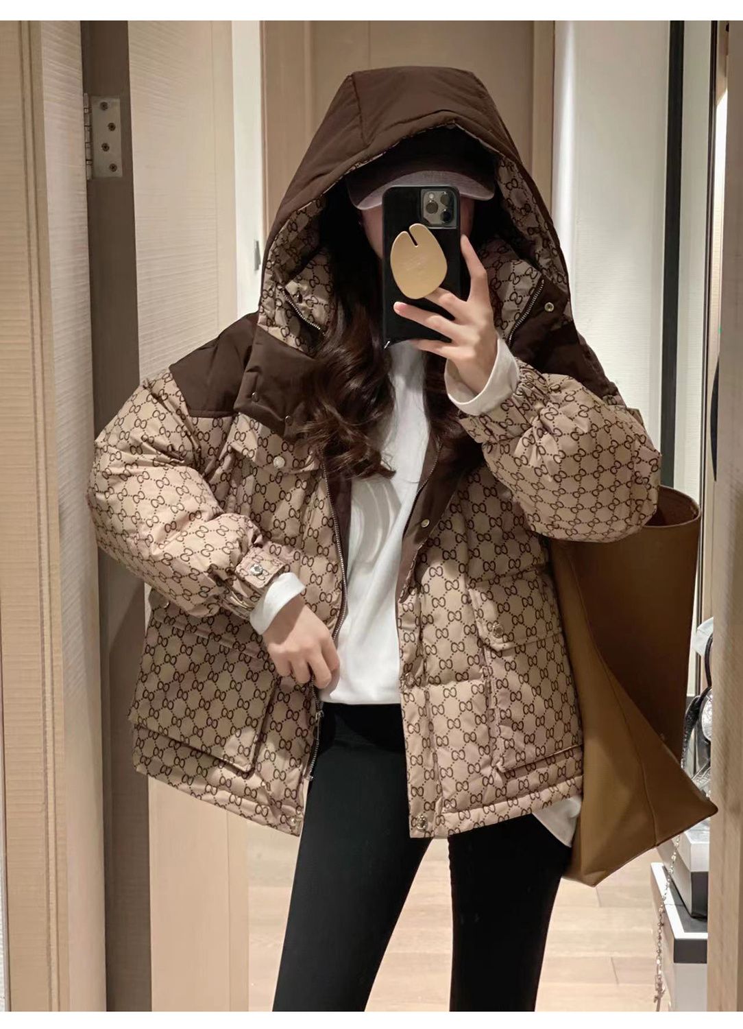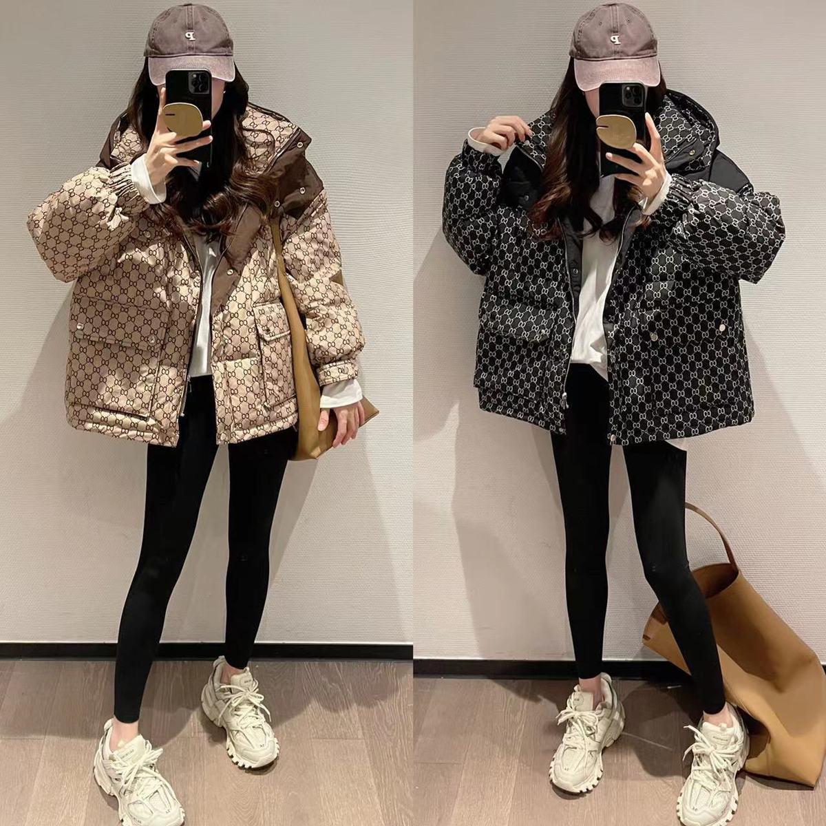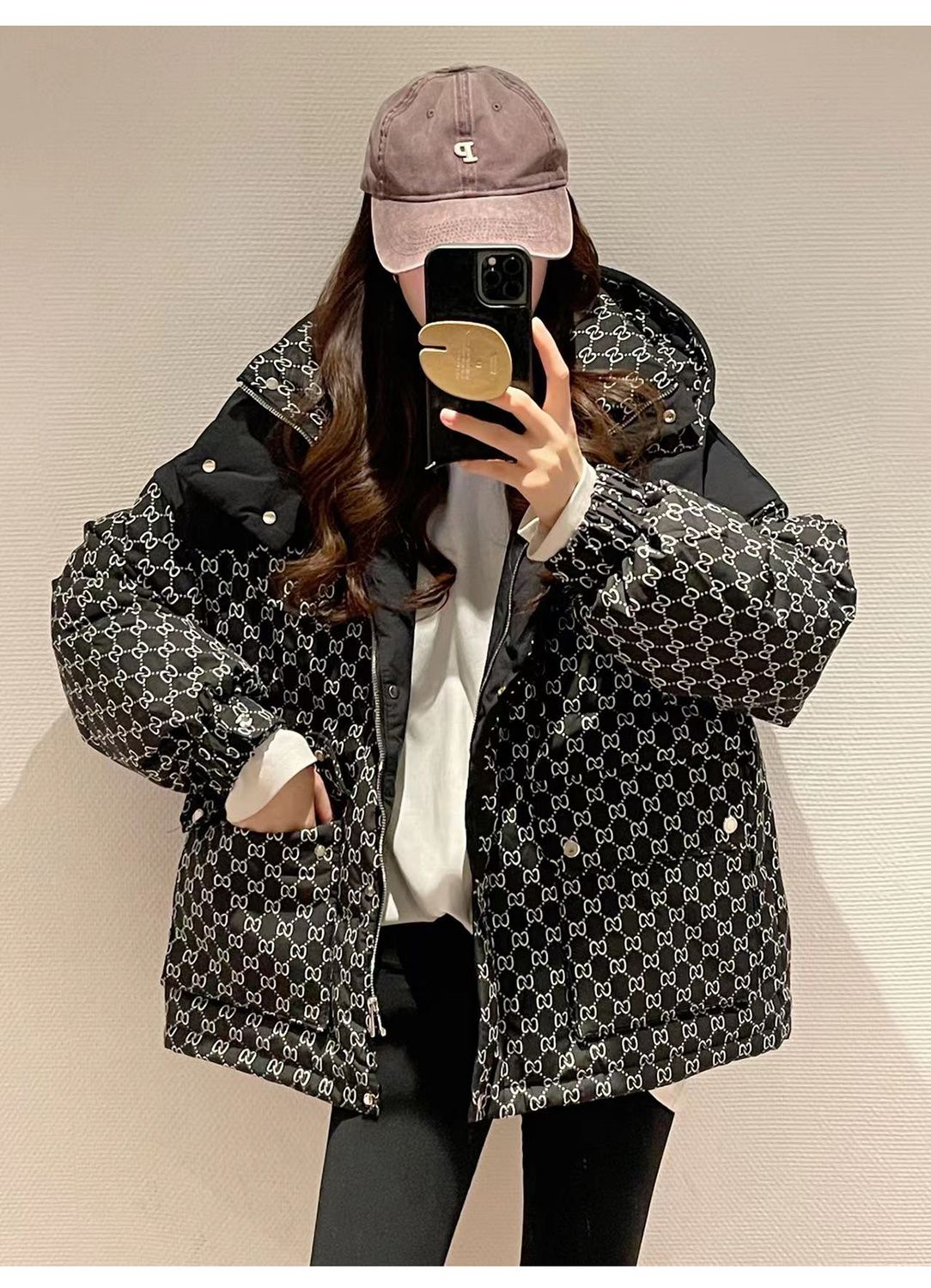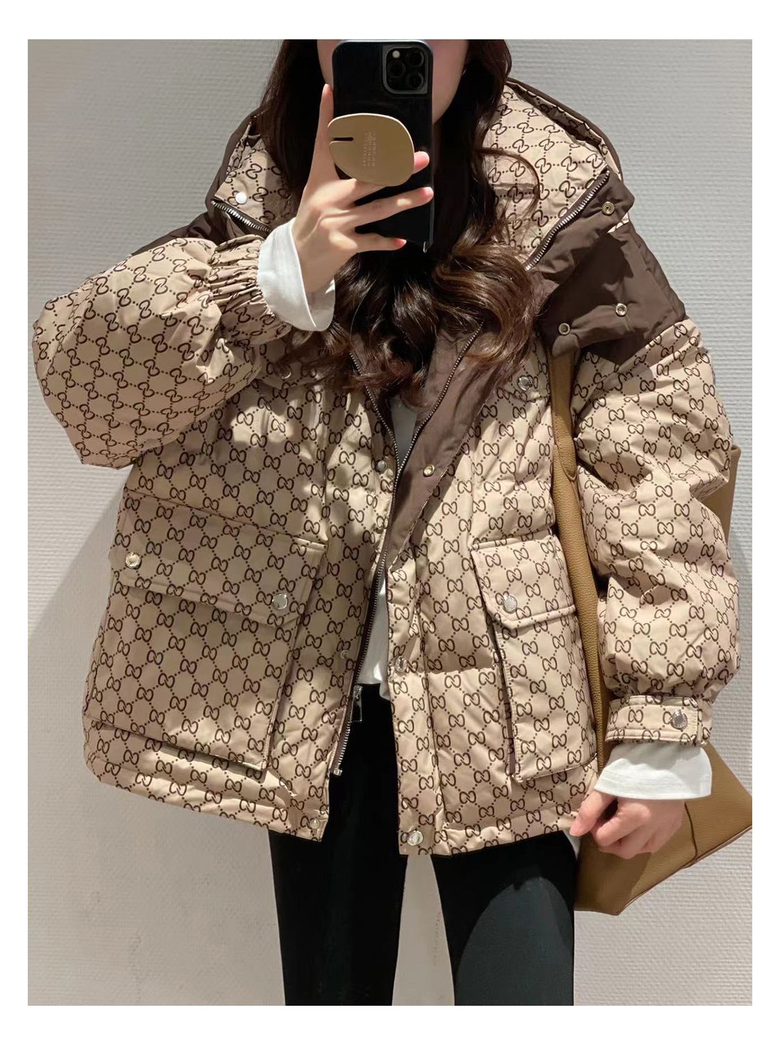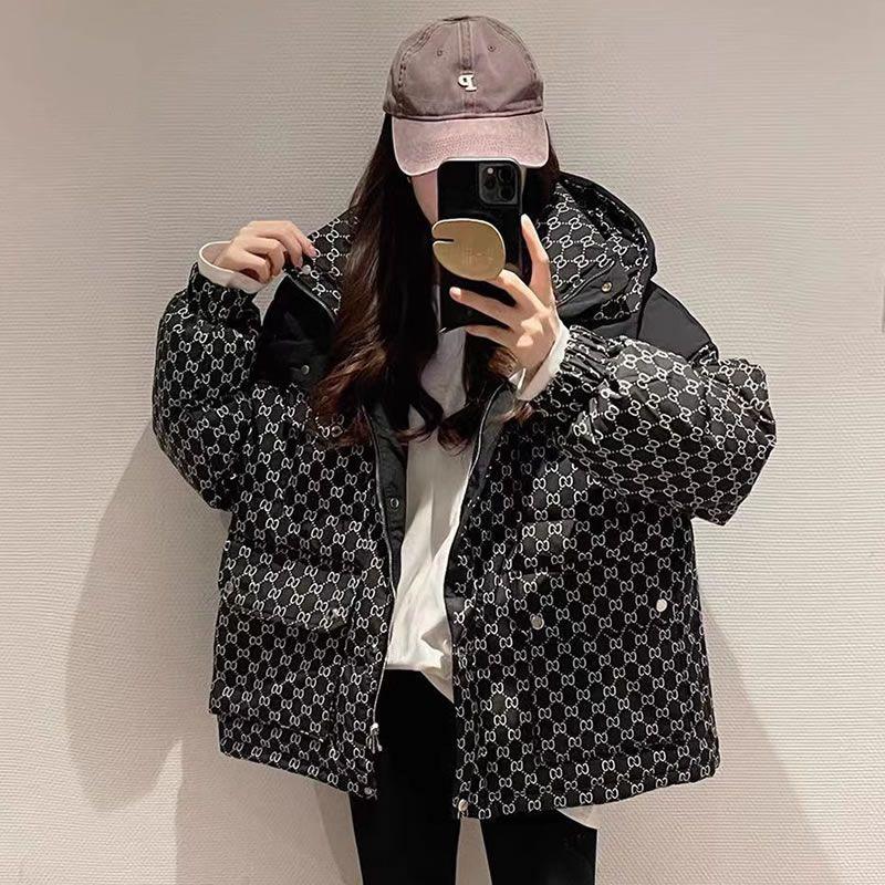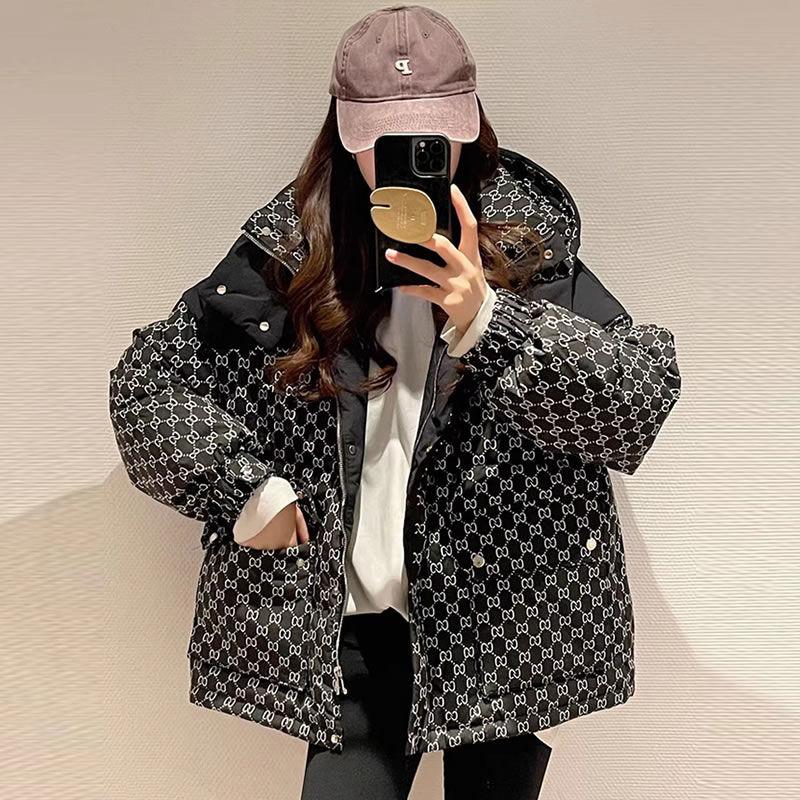 Printed Hooded Contrasting Color Down Jacket 0823112702
