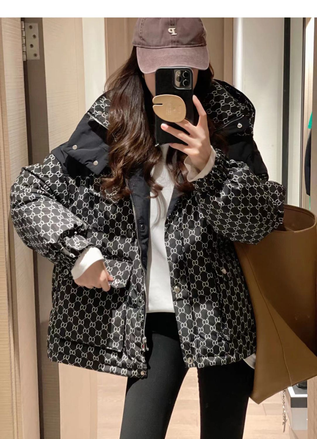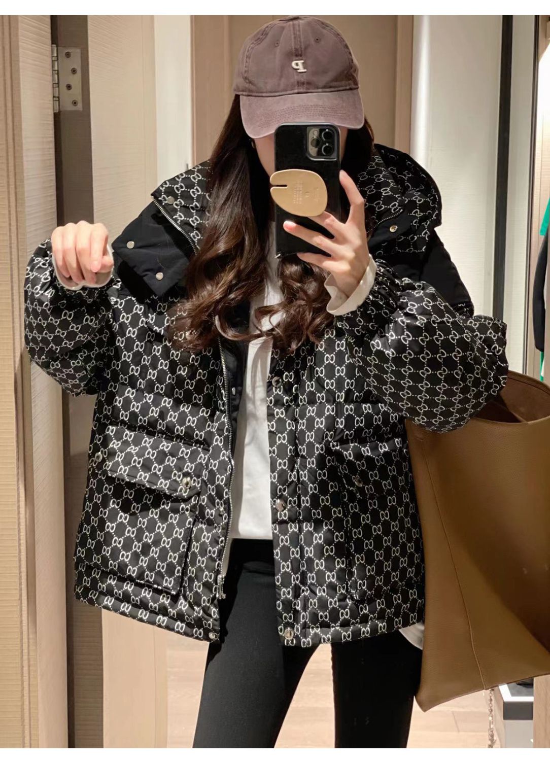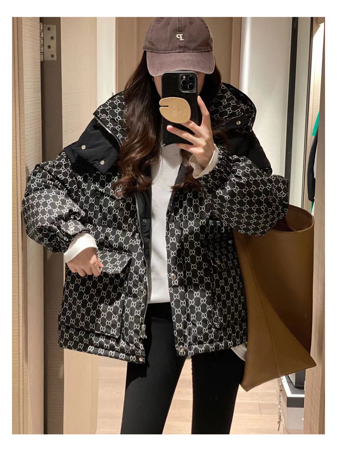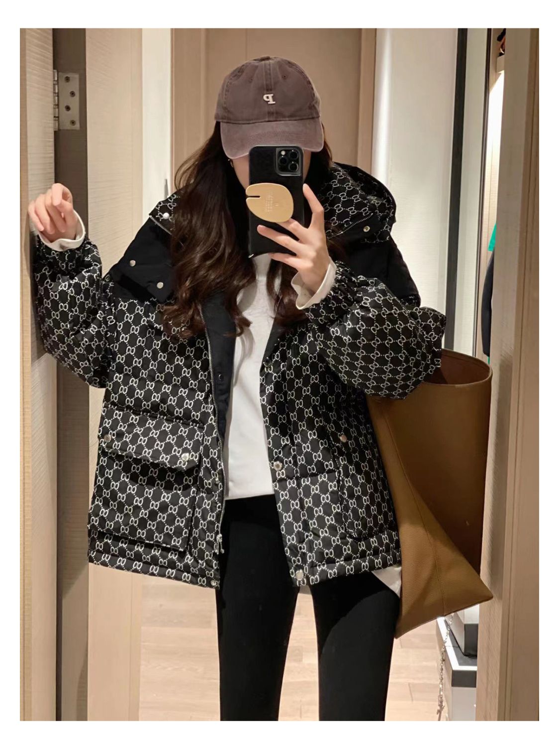 Printed Hooded Contrasting Color Down Jacket 0823112702