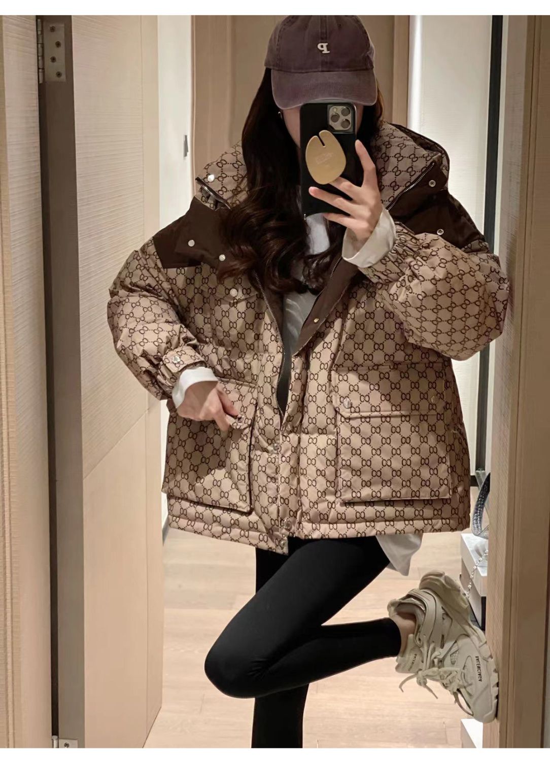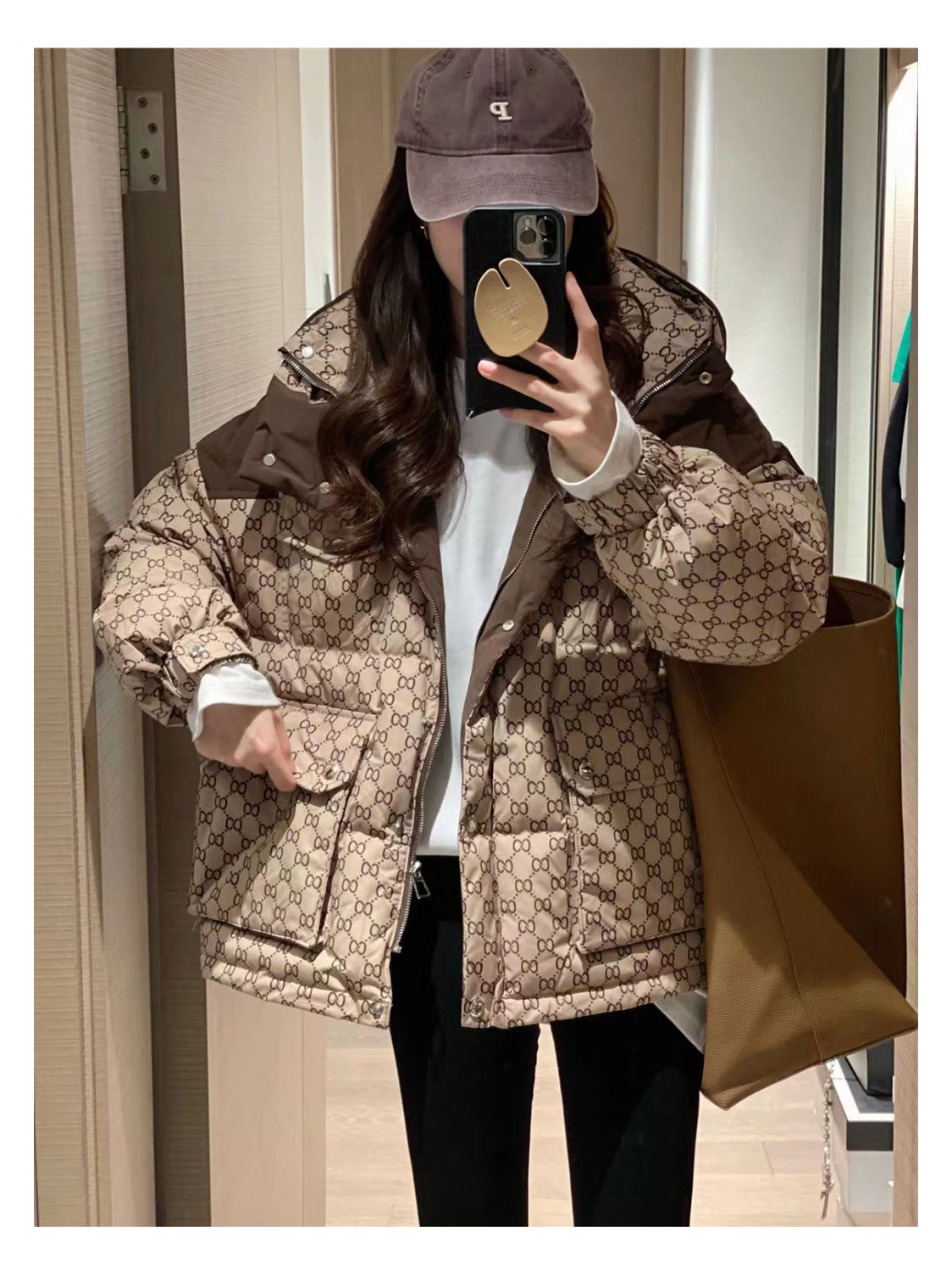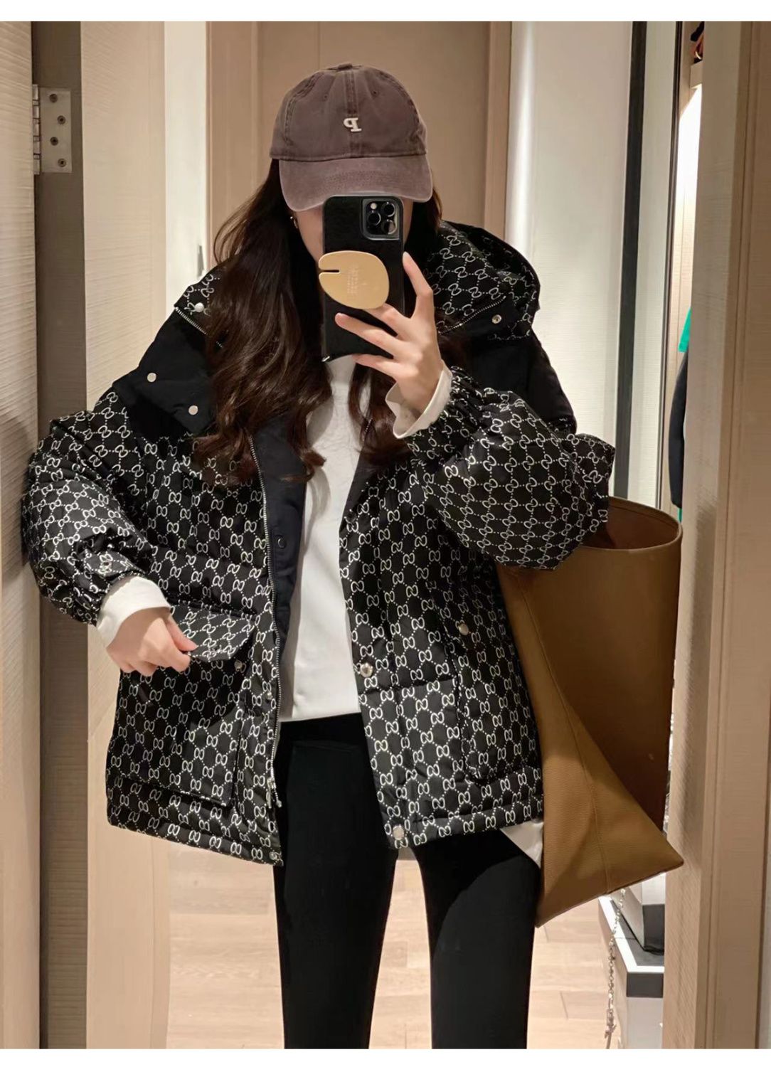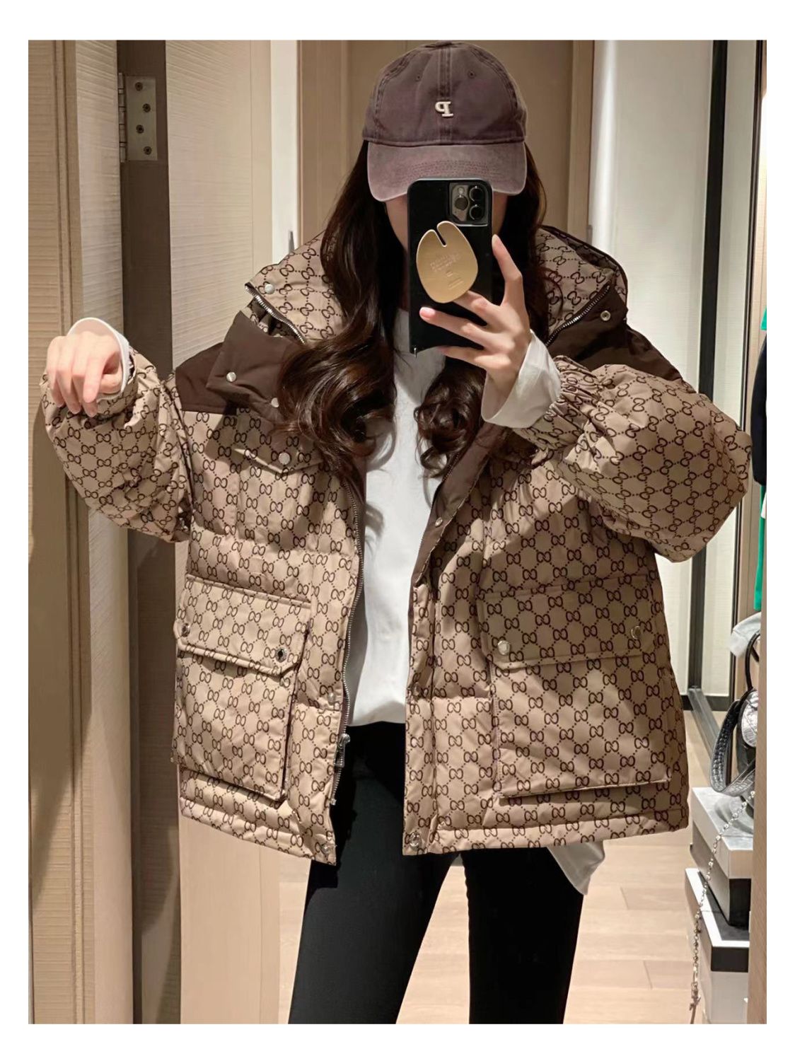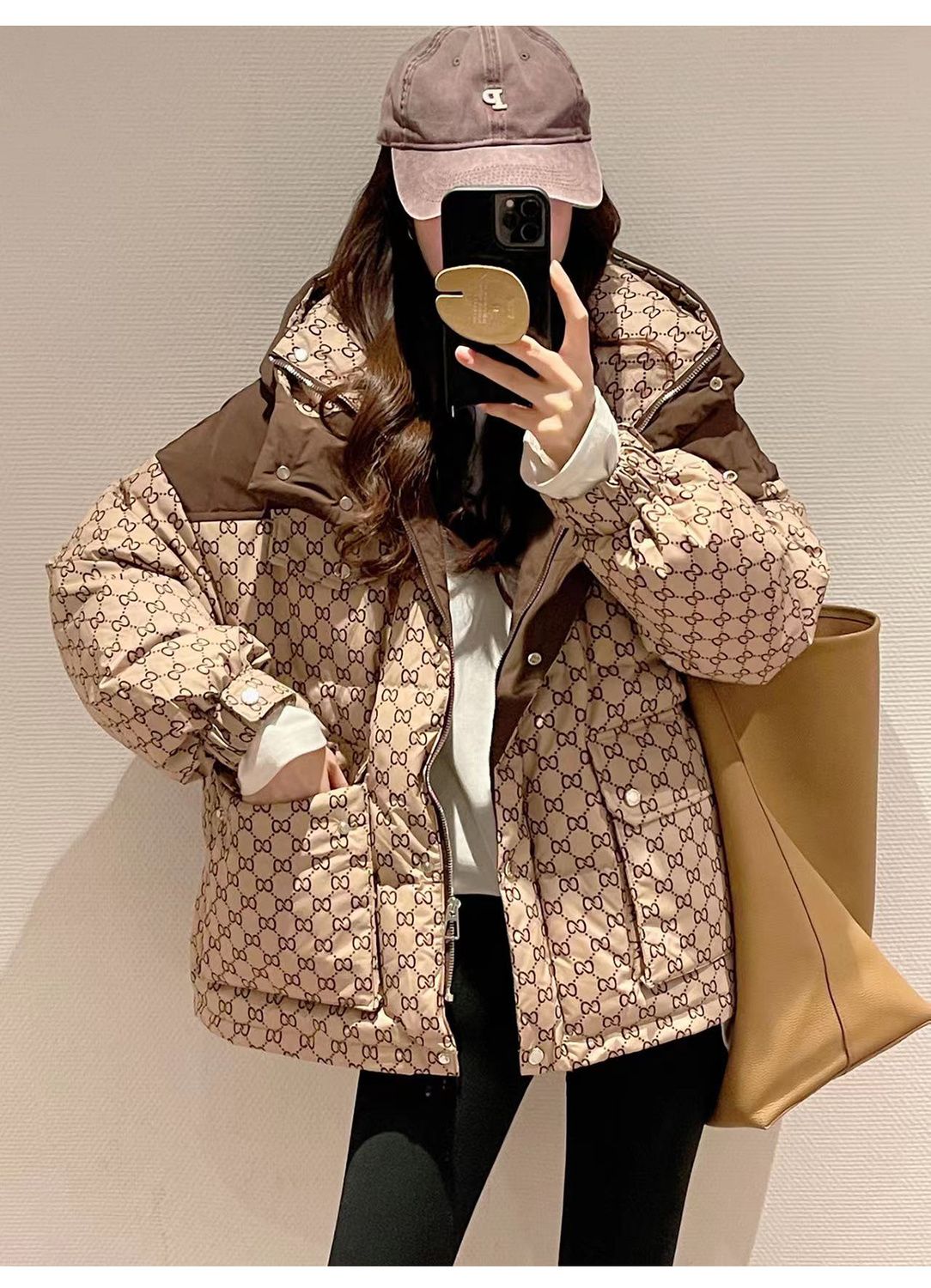 Printed Hooded Contrasting Color Down Jacket 0823112702