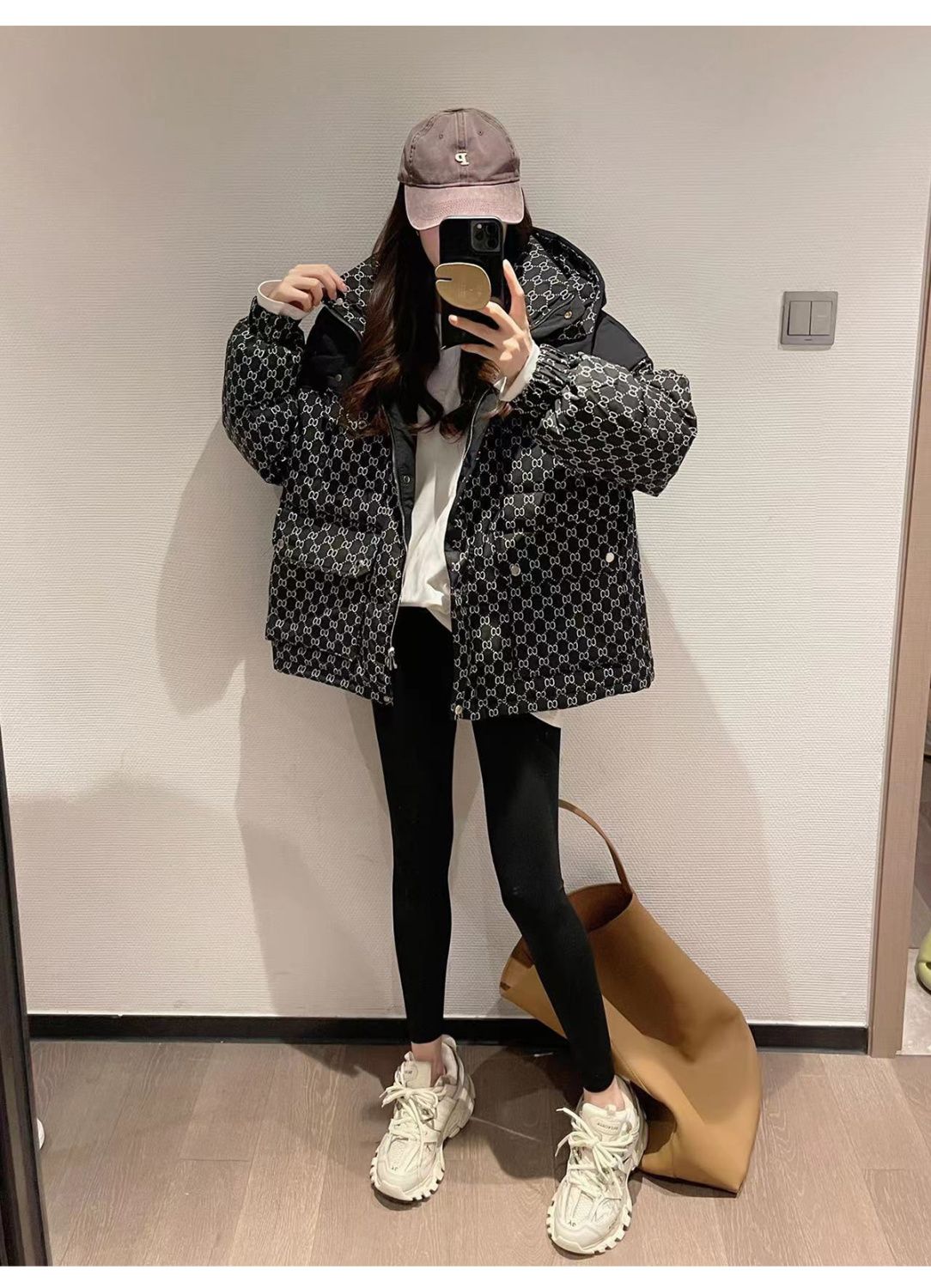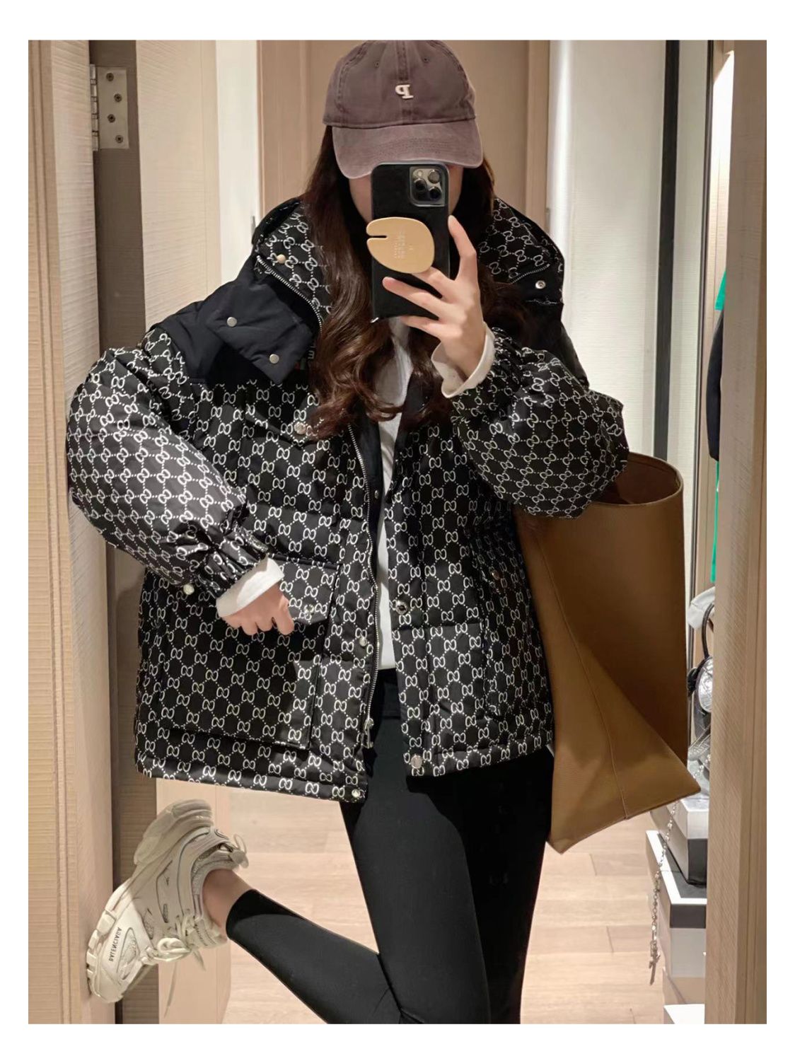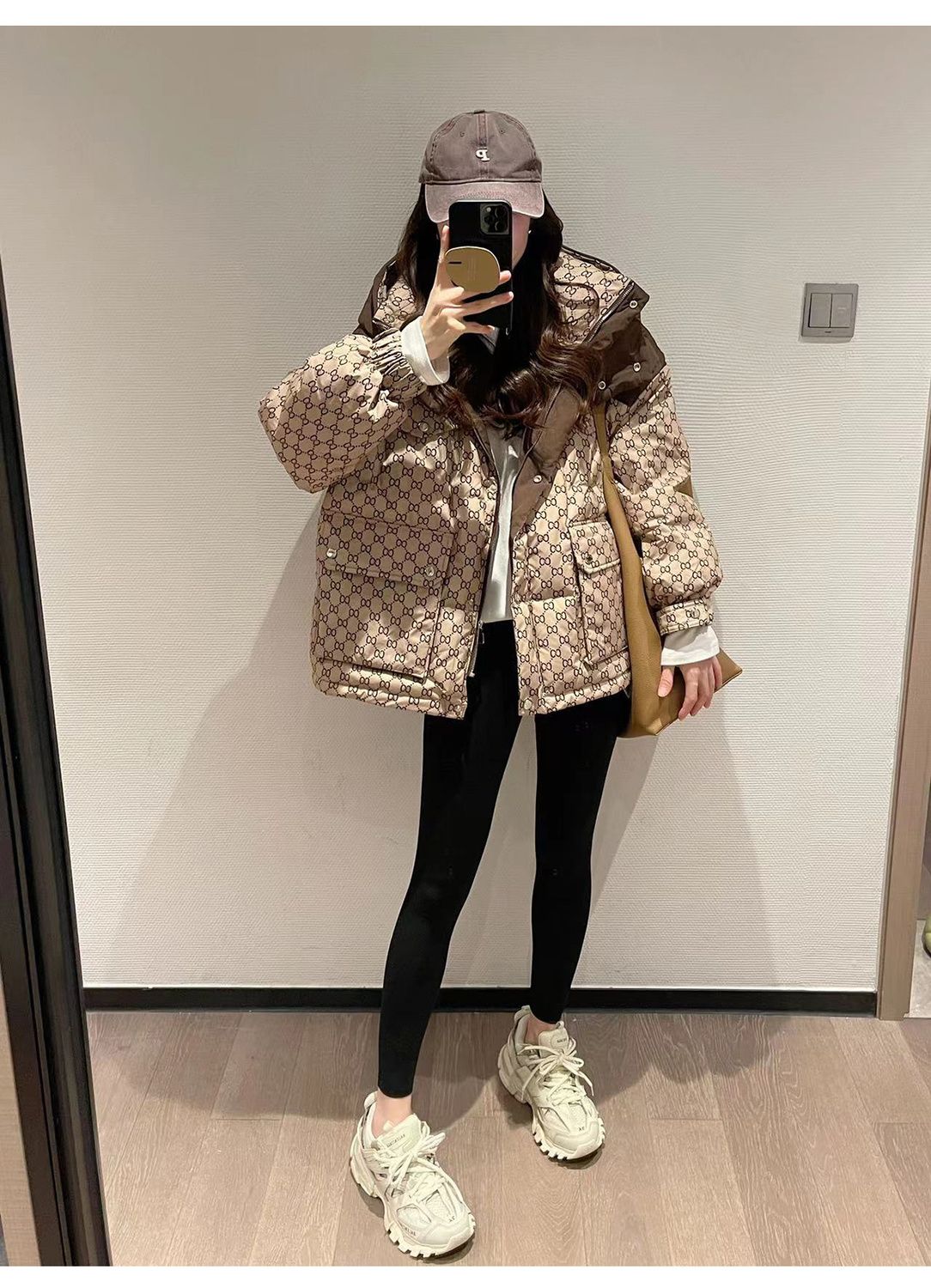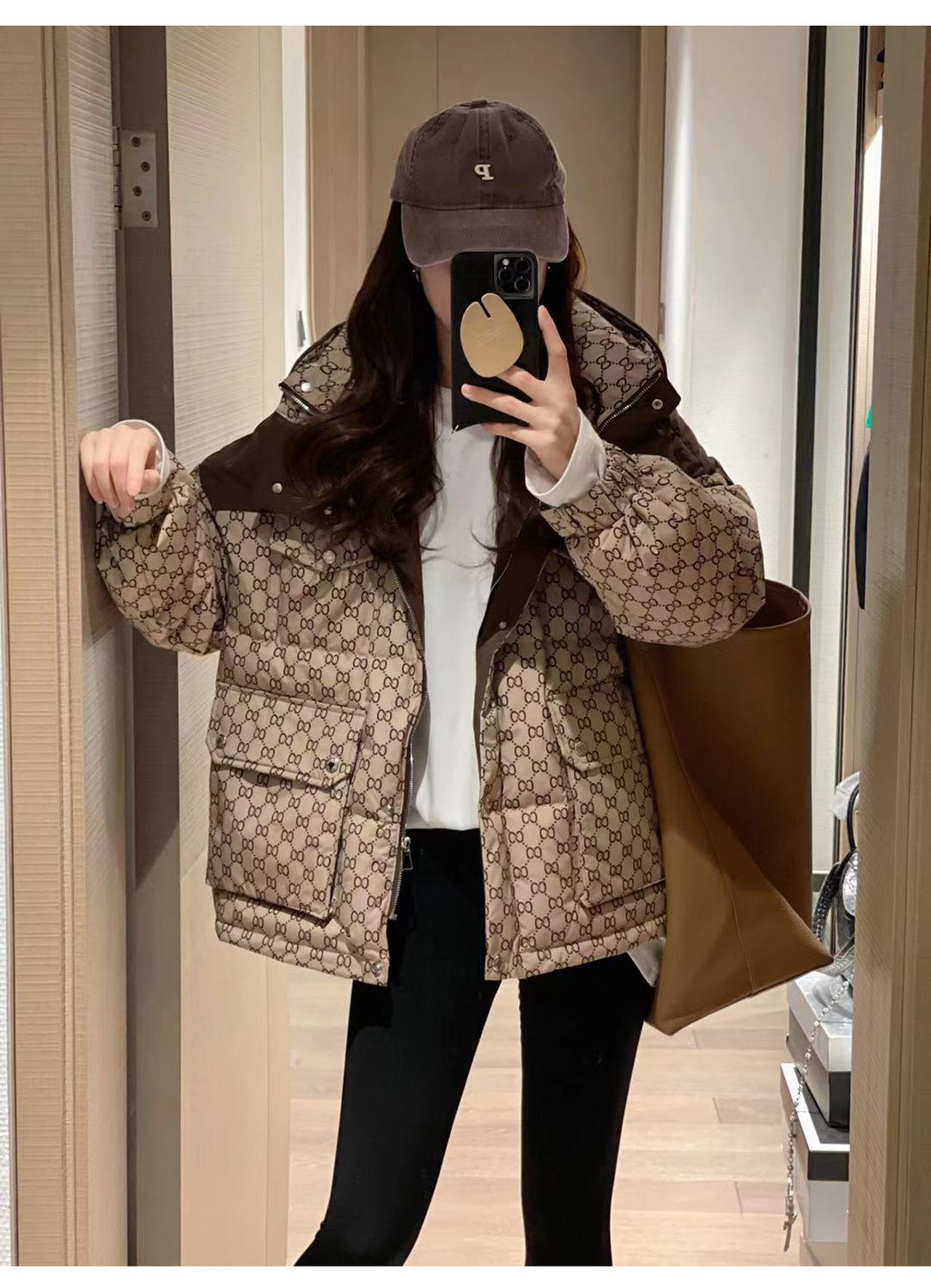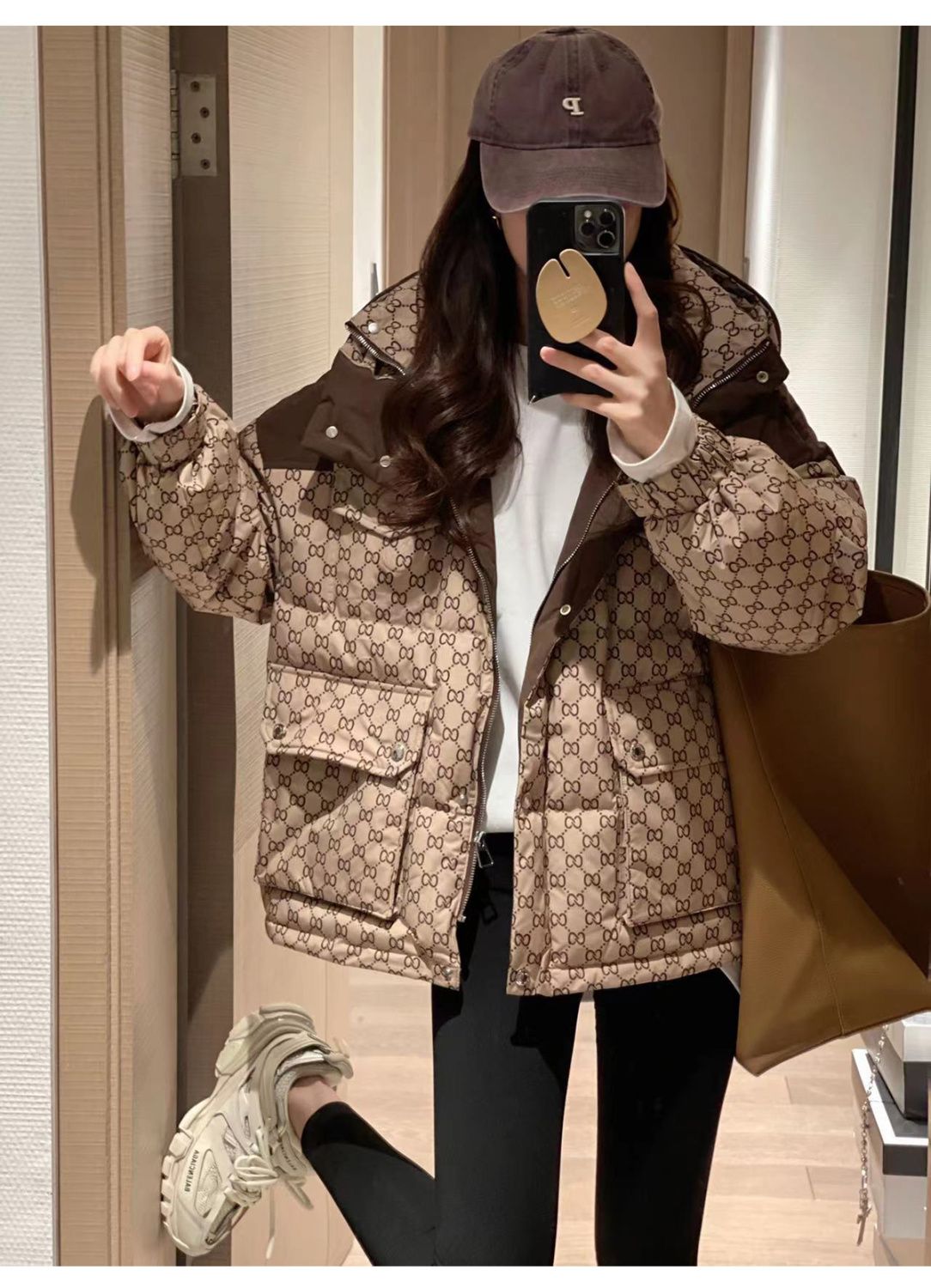 Printed Hooded Contrasting Color Down Jacket 0823112702