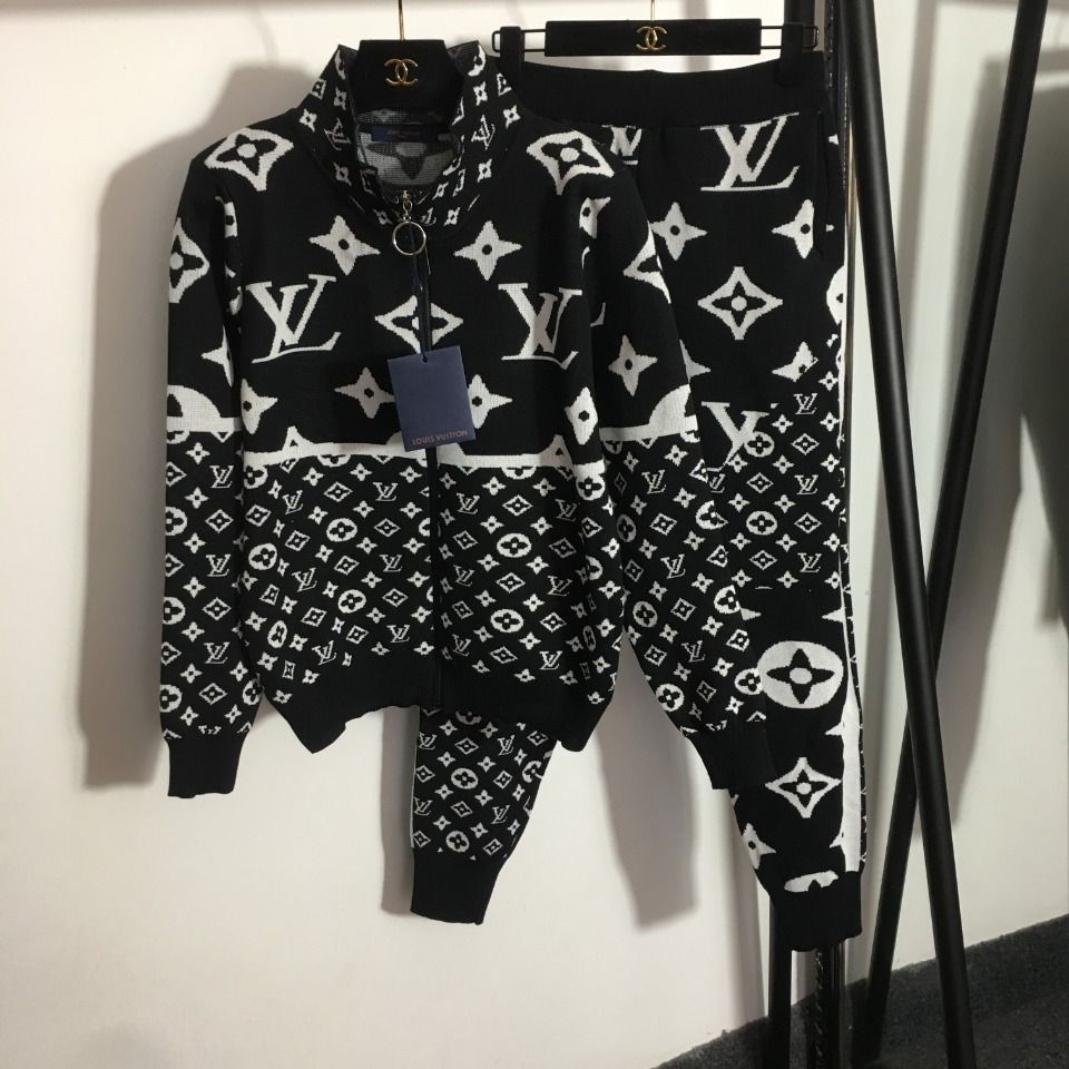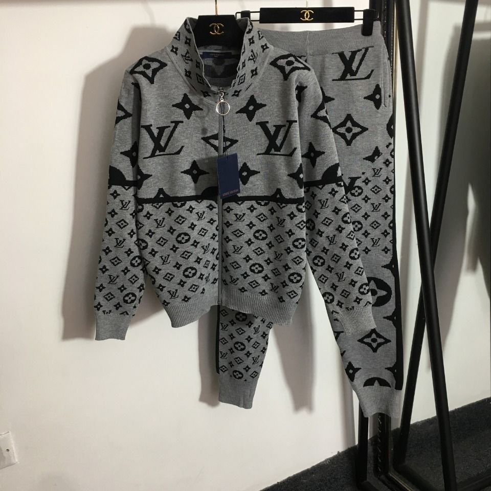 L letter stitching knitted suit