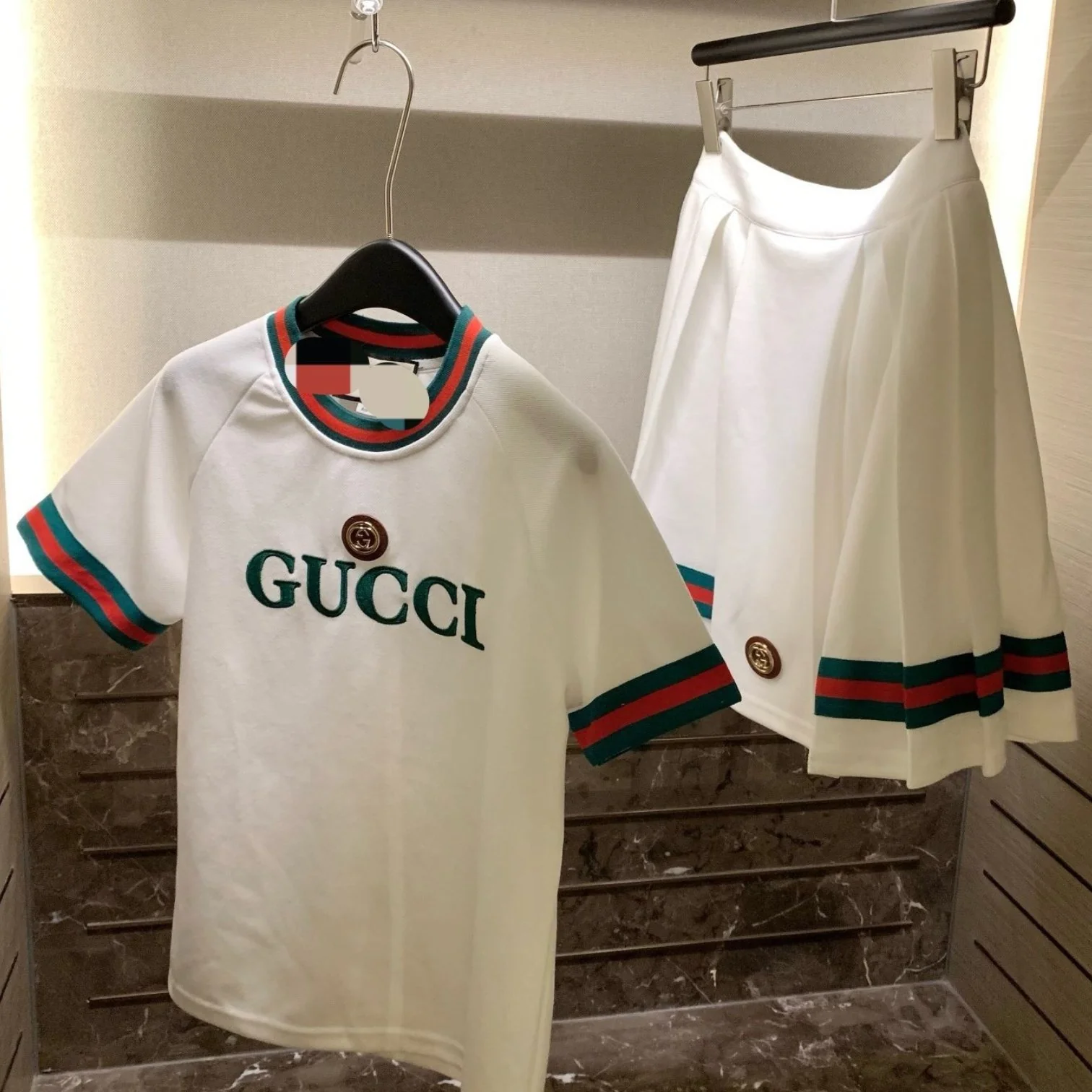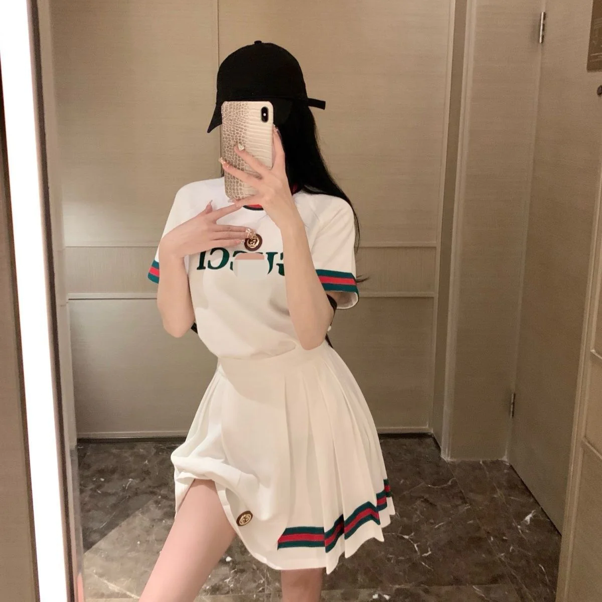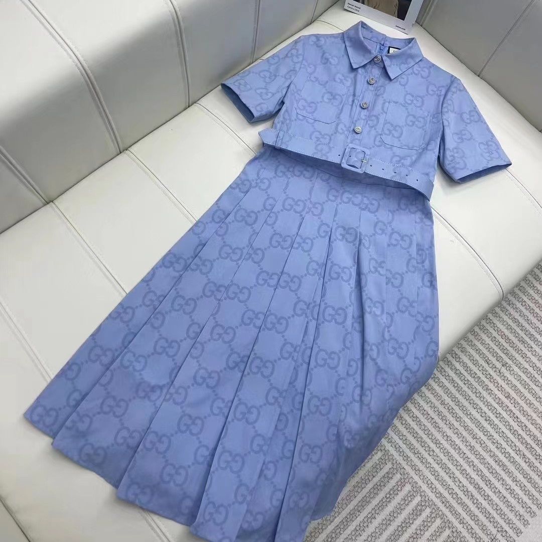 New Classic Embroidered Short-sleeved T-shirt Pleated Skirt Two-piece Set 1024031310