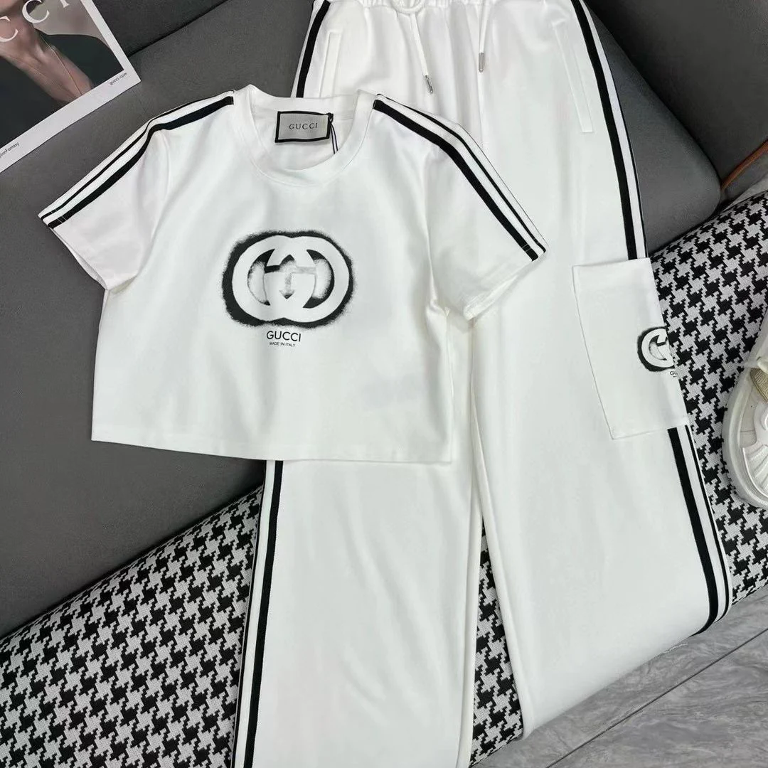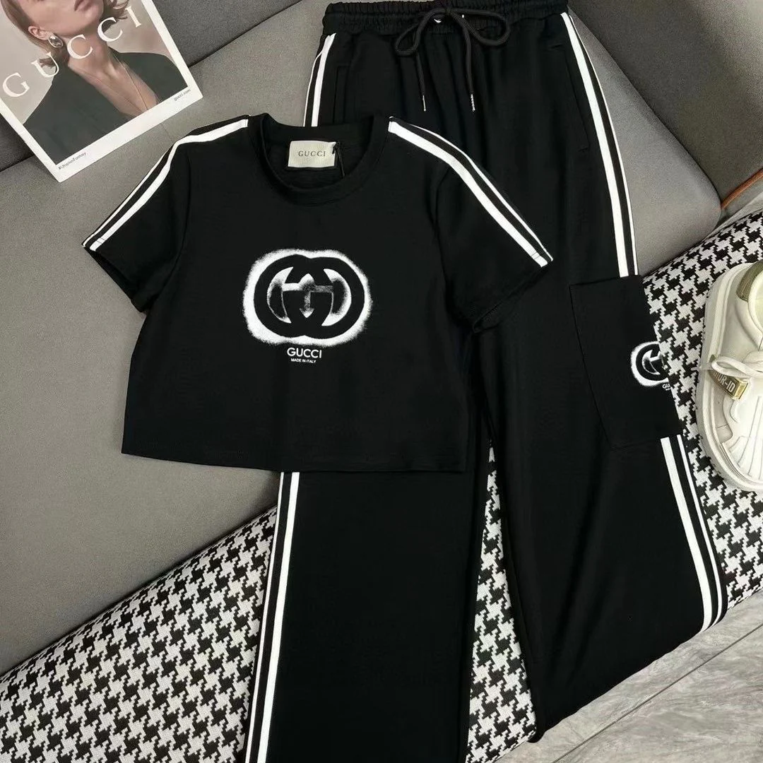 New Fashion All-match Graffiti Print Round Neck Short Sleeve Suit 1024040304