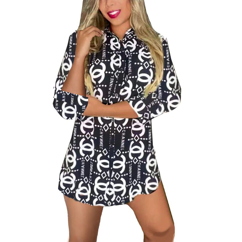 Summer new thin section lapel jacquard letters splicing foreign style temperament loose commuting long-sleeved shirt jacket women's fashion