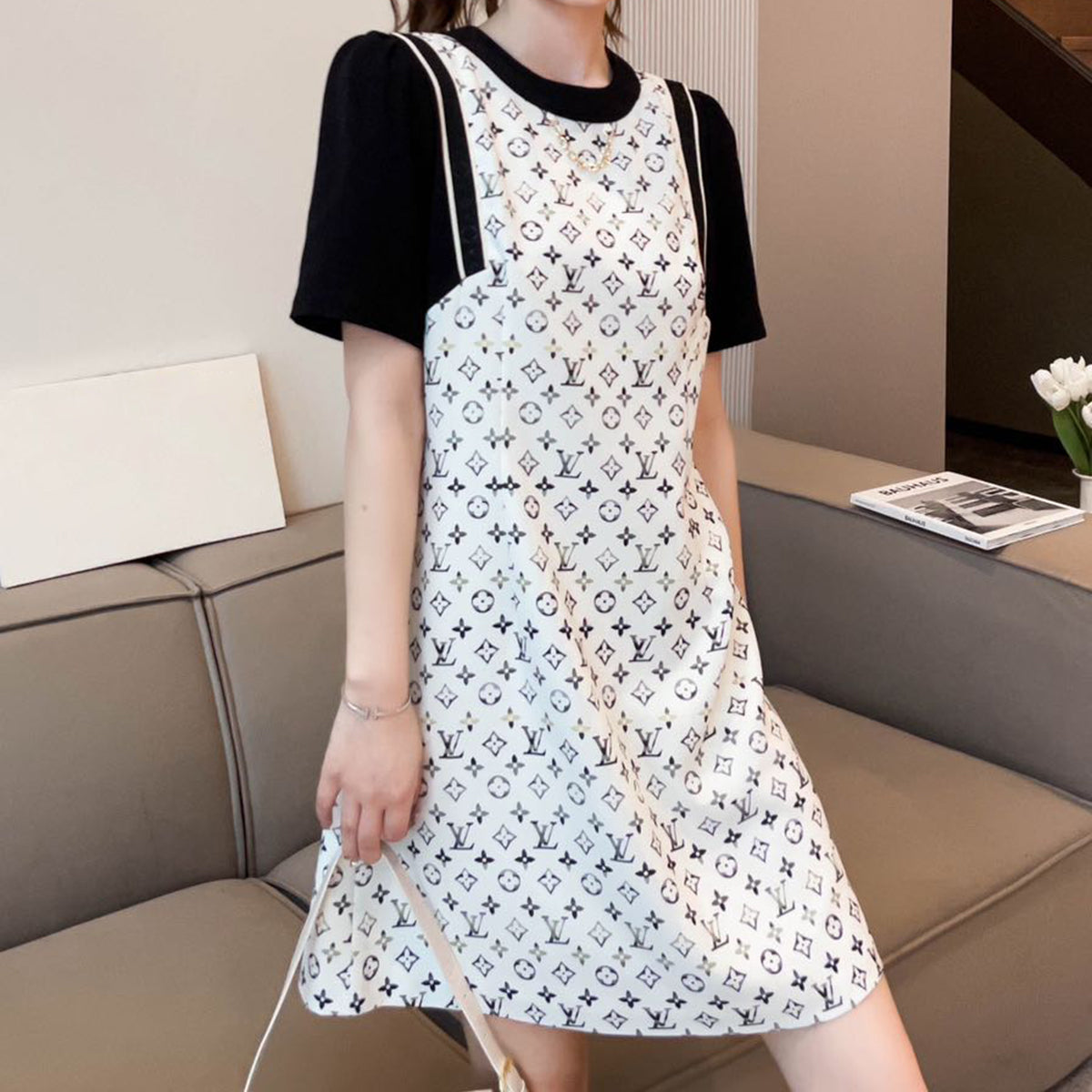 Fake Two-Piece Contrasting Panel Dress MM10041420