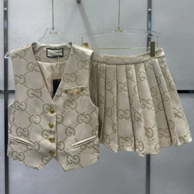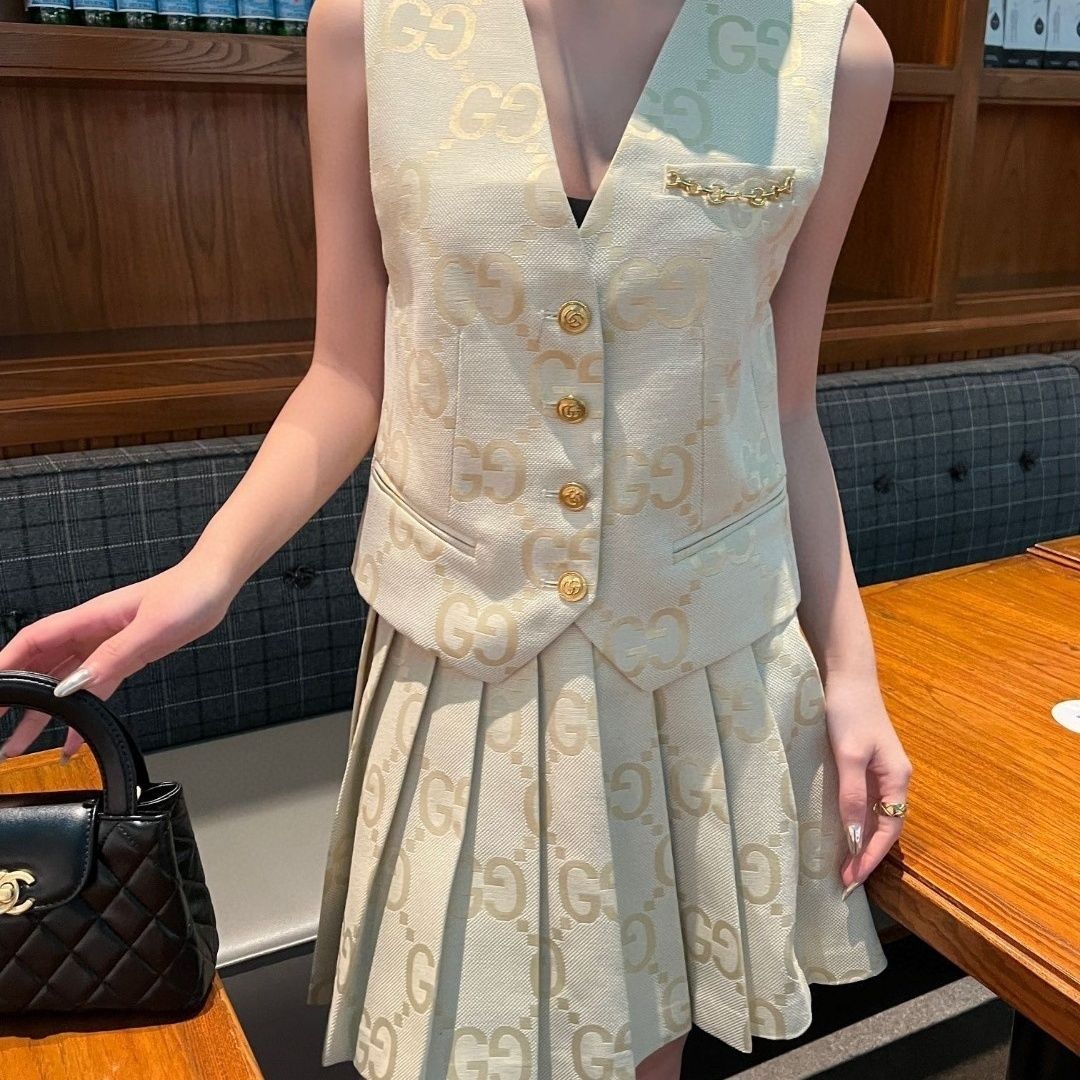 New High Sense Jacquard Vest Suit Vest Pleated Skirt Suit 1024031815