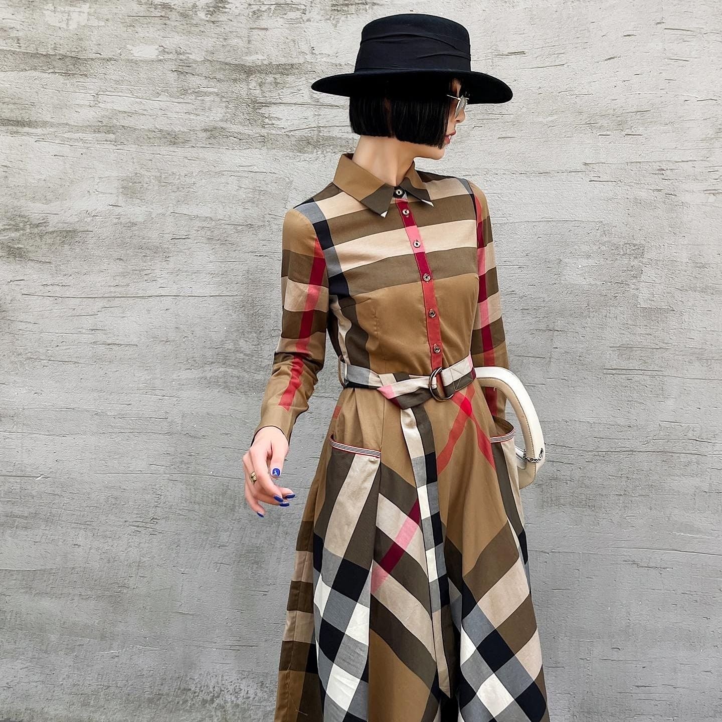 Fashion Women's Checkered Trench Coat 1023121503
